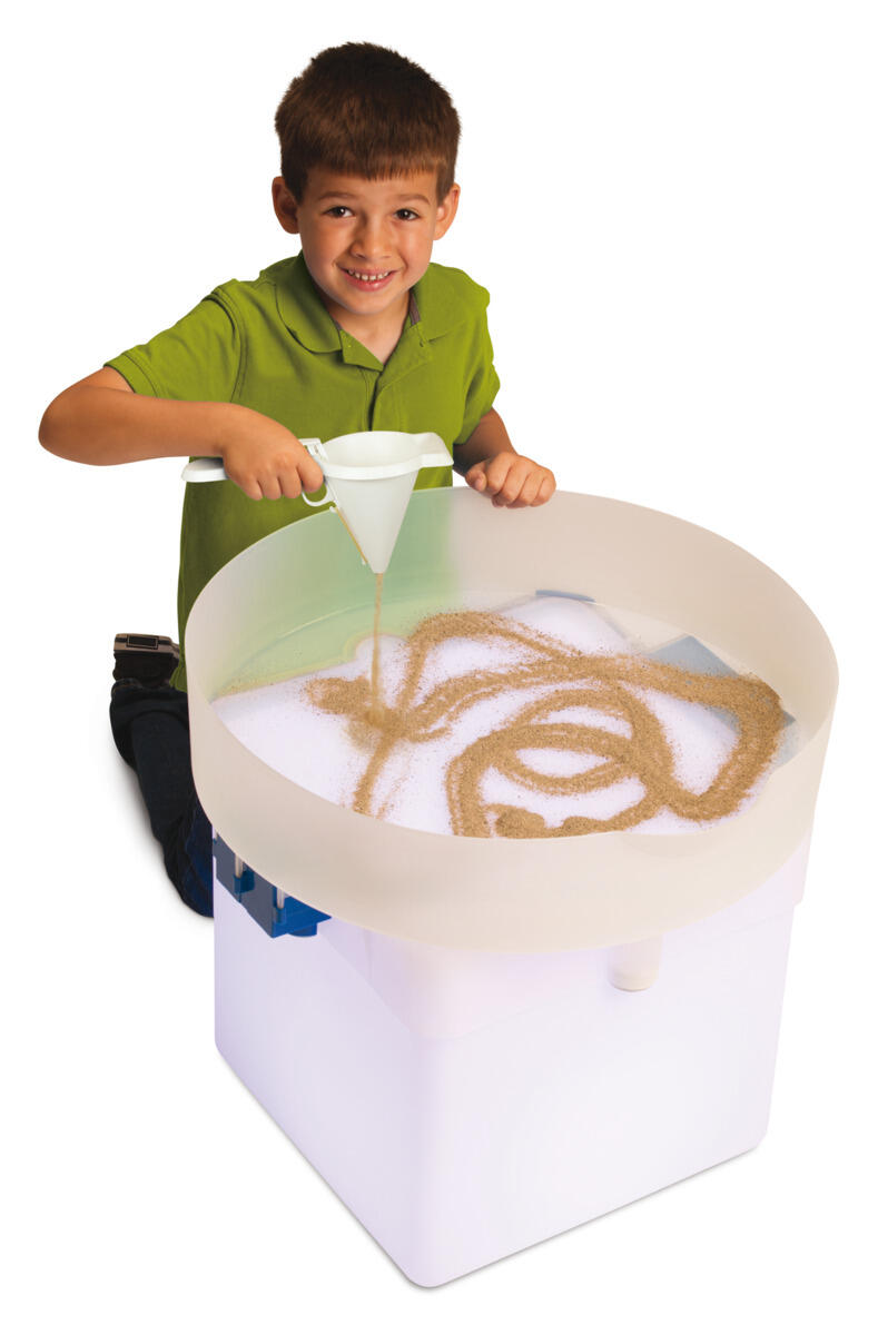 Täytä kauha, paina nappia ja katso miten hiekka valuu ulos. Kirjoita kirjaimia, numeroita tai tee kuvia. Mitat: 20,5 x 12 cm. Polyeteenimuovia. Yli 3-vuotiaille.