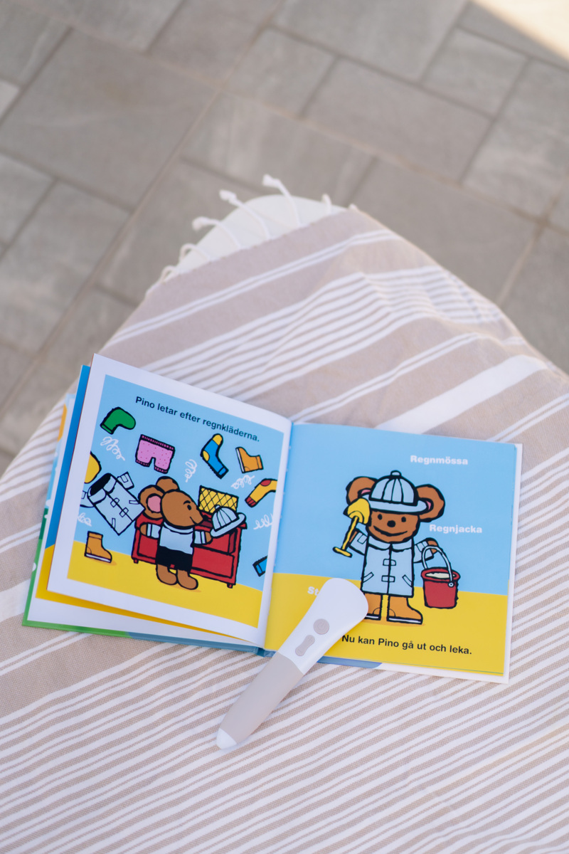Huom. Tuote on ruotsinkielinen. Dutta på bilder och text i kompatibla böcker och andra pedagogiska produkter för att upptäcka förinspelade ljud, talade ord och musik. Innehåller: Readioos läspenna, en USB-C-kabel och en användarmanual.