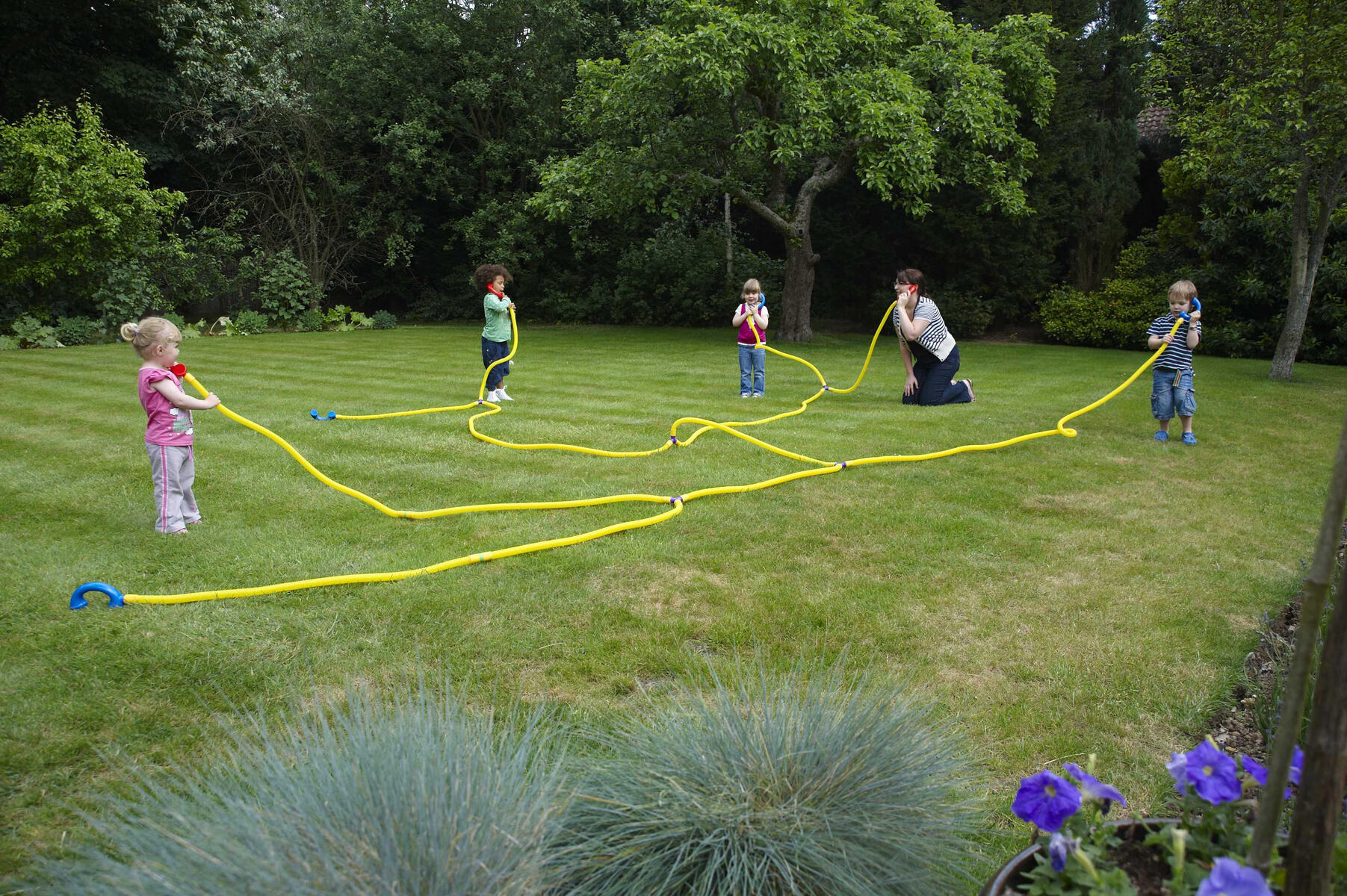 Juttele kaverille letkun kautta. Tee hauskoja harjoituksia putken ja luurien avulla. Puhelinta voidaan käyttää opetuksessa sisä- ja ulkotiloissa kehittämään lasten kommunikaatiotaitoja ja sosiaalisia valmiuksia. Voit jutella kaverin kanssa pienen välimatkan päästa esimerkiksi eri huoneista, sisältä ulos jne. Letkuja voimyös yhdistää niin, että voit jutella useiden kavereiden kanssa yhtäaikaa. Rakenne vahvaa muovia. Sisältää 8 luuria, 3 kpl 3m letkua, 12 kpl 1m letkua, 6 suoraa ja 6 y-liitospalaa.