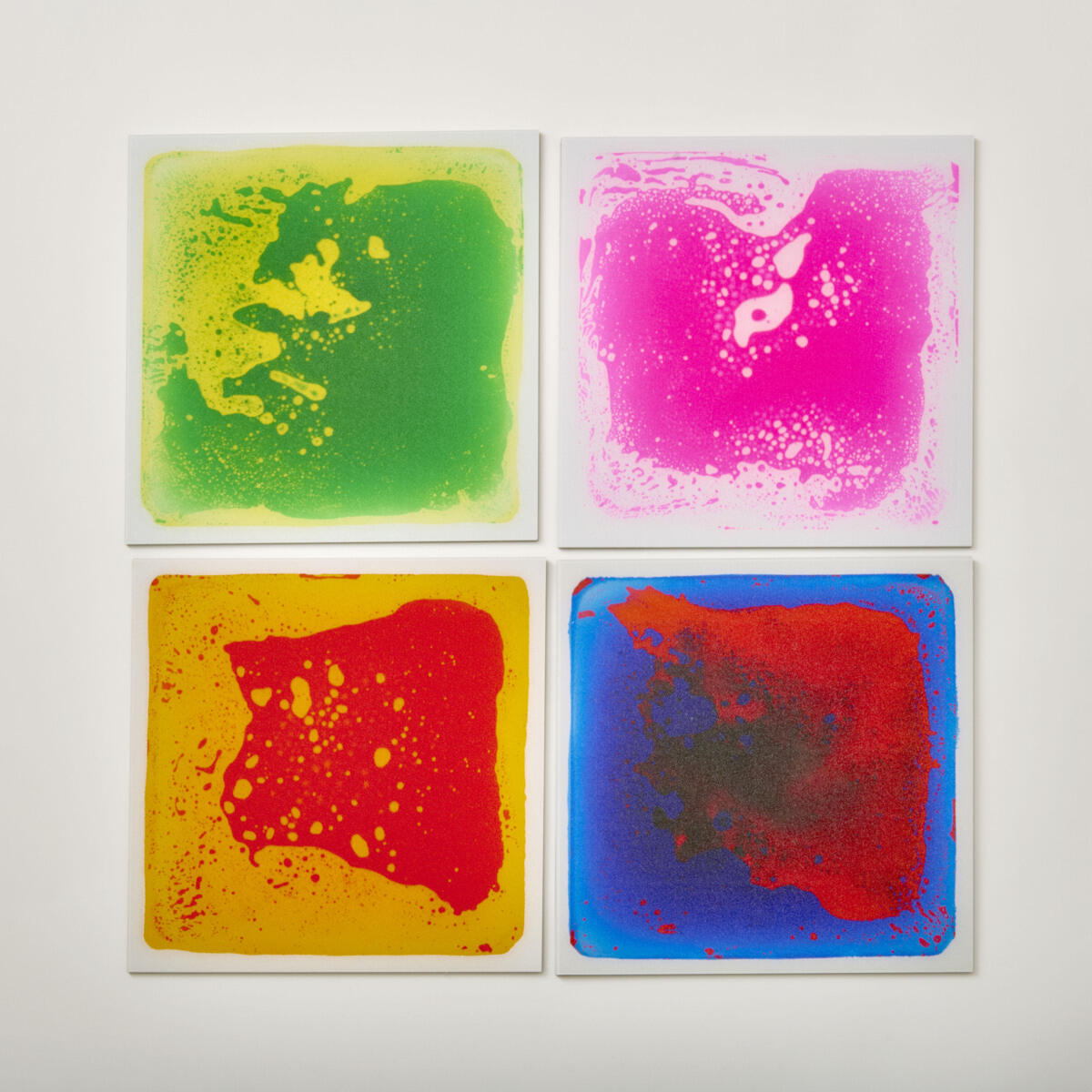 Hauskat, taktiiliset laatat kannustavat liikkumaan ja tunnustelemaan laattoja. Laattojen sisällä on geeliä, joka astuessa liikkuu ja muodostaa erilaisia kuvioita. Laatan päällä voi hyppiä tai sen päältä voi ajaa leikkiautolla tai pyörätuolilla. Laattaa voi pitää myös pöydällä ja painaa koko kämmenellä. Koko 30 x 30 cm.