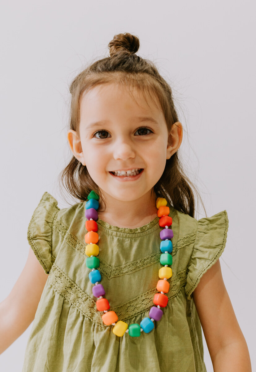 Keskikova – kova pureskelukoru. Lapset voivat pureskella kaulakorua vaatteiden, kynien, sormien tms. sijaan. Turvalukko. Mitat: pituus 53 cm. Elintarvikelaatuista silikonia. Voidaan pestä lämpimässä vedessä saippualla. Vaikka nämä puruvälineet ovat tukevia ja kestäviä, mikään purutyökalu ei ole tuhoutumaton, sillä se kuluu riippuen siitä, miten sitä käytetään. Valvo lasta käytön aikana, tarkasta kaulakoru säännöllisesti ja hävitä ensimmäisten kulumismerkkien yhteydessä. Suositellaan 3-vuotiaille ja sitä vanhemmille lapsille.