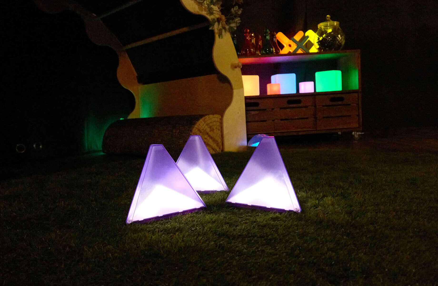 Pakkaus sisältää 12 ladattavaa, pyöreää valokiveä. Niitä voi käyttää aistien stimuloimiseen ja ne myös houkuttelevat lasta tutkimaan. Valokiviä voi pinota päällekkäin ja lajitella. Valokiven väri vaihtuu nappia painamalla. Värin voi asettaa vaihtumaan automaattisesti tai valita pysyvästi joku väri. Latausaika on 4 tuntia ja toiminta-aika 10 - 12 tuntia. Kolme eri kokoista kiveä: ø 4,5 – 15 cm. Materiaali on ABS-muovia. Yli 1-vuotiaille.