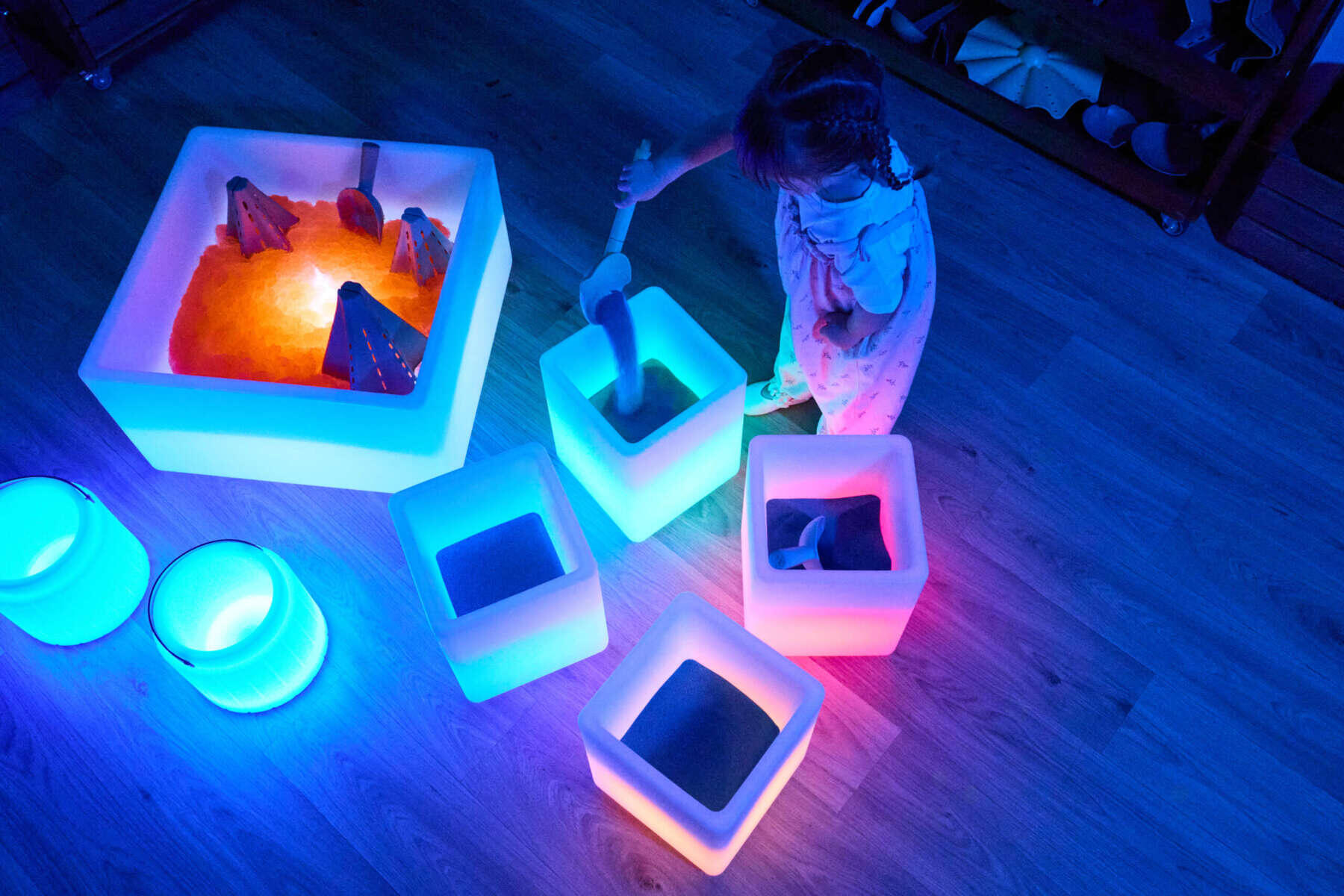 Anna lasten tutustua valoon, väreihin ja materiaaleihin leikkisällä tavalla. Nämä monipuoliset ja vedenpitävät kuutiot voidaan täyttää ja käyttää muun muassa hiekan kanssa. Täydellinen STEAM-painotteiseen leikkiin, joka kannustaa luovuuteen, kieleen, lajitteluun ja varhaiseen matemaattiseen ymmärrykseen. Kuutiot sopivat yhtä hyvin itsenäiseen leikkiin kuin suurempiin yhteistyöprojekteihin ja ne on helppo pinota käytännöllistä säilytystä varten. Latausaika 10 tuntia, käyttöaika 8 tuntia. Mitat: 29,5 x 24 x 24 cm. Yli 3-vuotiaille. TTS.