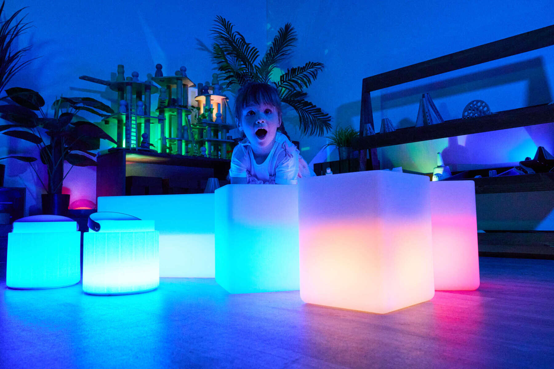Kiehtovat valokuutiot, jotka vaihtavat väriä, kun niitä kääntää sivulta toiselle. Lapset ihastuvat kääntelemään palikoita käsissään ja seuraamaan kuinka värit vaihtuvat. Valopalikoita voi yhdistää läpinäkyvien jäätikköpalikoiden kanssa ja rakentaa niistä yhdessä sisältä loistavan iglun tai värillisen ikkunan. Ladataan USB-johdolla, joka sisältyy pakkaukseen. Pakkauksessa on 4 kpl 15 cm kuutioita ja 8 kpl 7,5 cm kuutioita. Polypropeenia. Kaikenikäisille.