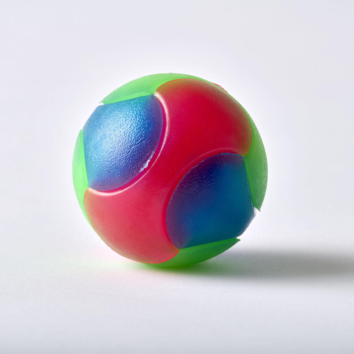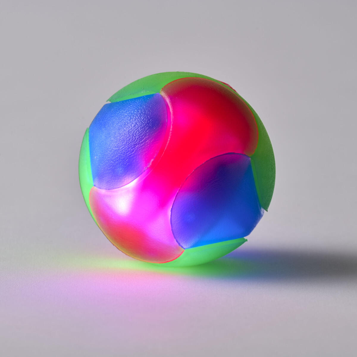 Värikkään pallon valot vilkkuvat, kun sitä heitetään lattiaan tai seinään. Houkuttaa liikkumaan ja harjoittaa motoriikkaa. Koko: 7 cm.