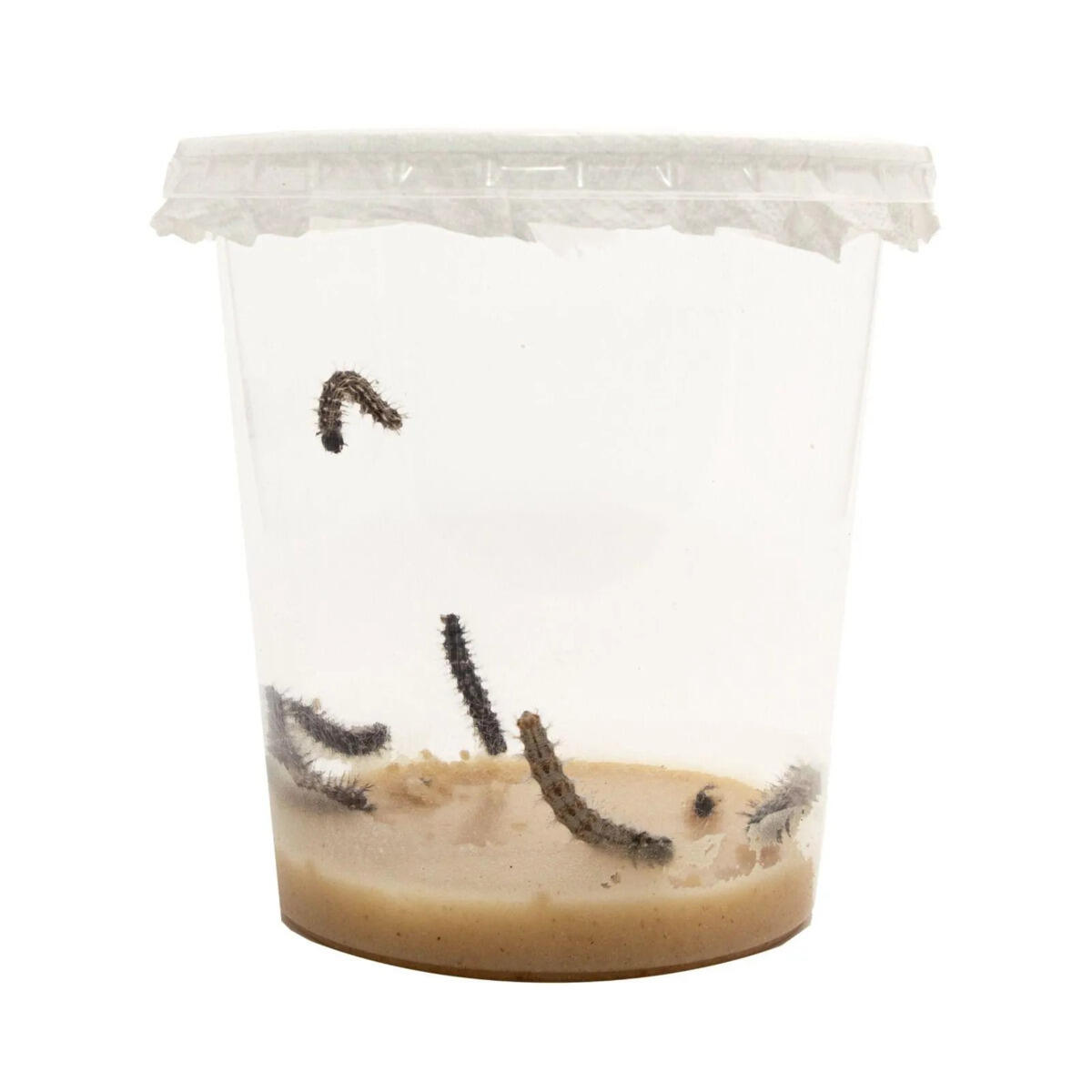 Täyttöpakkaus, jossa on noin 7 perhostoukkaa. Sopii niille, joilla on jo perhostalo. Purkki sisältää riittävästi ruokaa toukkien koko kehitykseen. Noin 1-2 viikon kuluttua toukat ovat koteloituneet ja ne voidaan nostaa perhostaloon, tuotenro 140515. Vapauta sitten perhoset sopivaan paikkaan ja seuraa niiden kehitystä. HUOM! Koska perhoset ovat eläviä olentoja, emme voi taata, että yli kolme yksilöä selviää koko prosessia. Toukat toimitetaan suoraan varastostamme. Ei toimituksia lokakuusta maaliskuun puoliväliin.