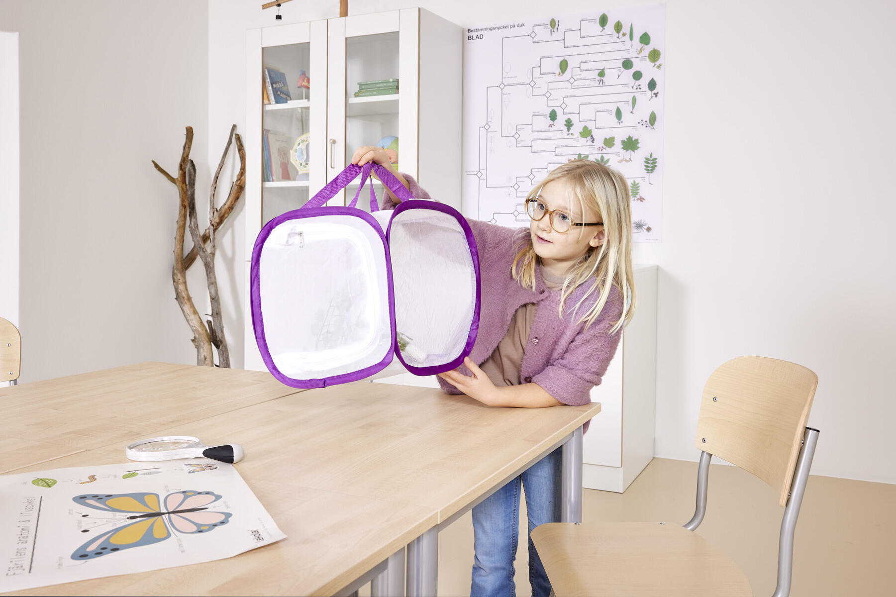 Pieni perhoshäkki. Mitat: 30 x 30 x 30 cm.