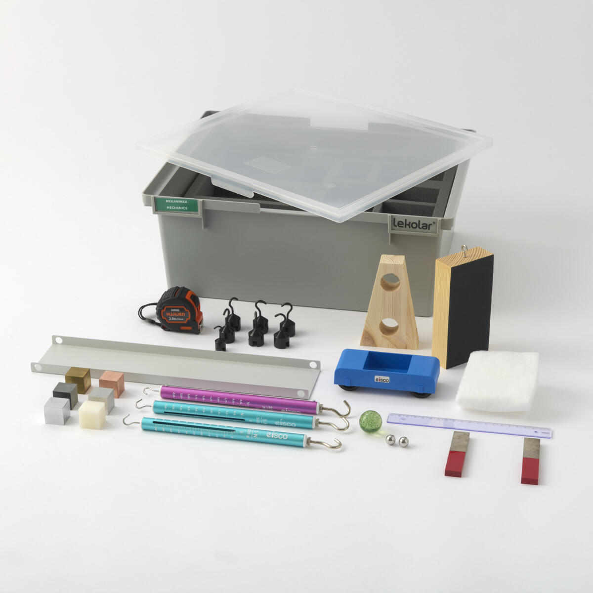 Oppilastyösarjassa on noin 20-30 erilaista työohjetta oppilaille sekä opettajan materiaali, jotka perustuvat opetussuunnitelman fysiikan sisältöihin. Oppilastyösarjan avulla oppilaat voivat tutkia liikettä, voimaa, väliaineen vaikutuksia, kitkaa, tiheyttä, nostetta, energiaa, työtä, tehoa, tasapainoa ja painetta, sekä tarkastella yksinkertaisten koneiden toimintaperiaatteita. Oppilastyösarja on ideaali parityöskentelyyn, jolloin 16 oppilaan ryhmäkoon toteutessa luokkaan tarvitsee kahdeksan oppilastyösarjaa. Halutessaan opettaja voi myös demota töitä oppilaille. Oppilastyösarjojen avulla opettajan aikaa vapautuu irtotavaroiden keräämisestä ja jakamisesta itse opettamiseen ja oppilaiden ohjaamiseen. Oppilastyösarja sisältää jousivaakoja, eri kokoisia punnuksia, kaltevan tason, vaunun kaltevalle tasolle, kitkakappaleen, suorakulmaiset eriaineiset särmiöt, sauvamagneettiparin, rautakuulia, pomppupallon, rullamitan, tasapainokappaleen sekä vanurullapalan. Työohjeiden ja sisällön kehittyessä, kaiken tarvittavan täydennyksiin löydät Lekolarilta. Oppilastyösarjoja saatavilla myös lämmön (163492), aaltoliikkeen (163581) ja sähkön (163598) sisältöjen opettamiseen.
