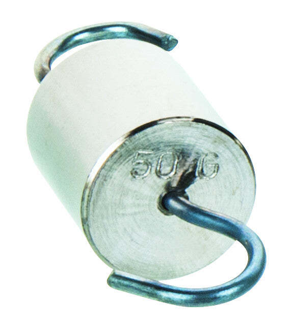 Teräksinen paino, jossa koukut molemmissa päissä.