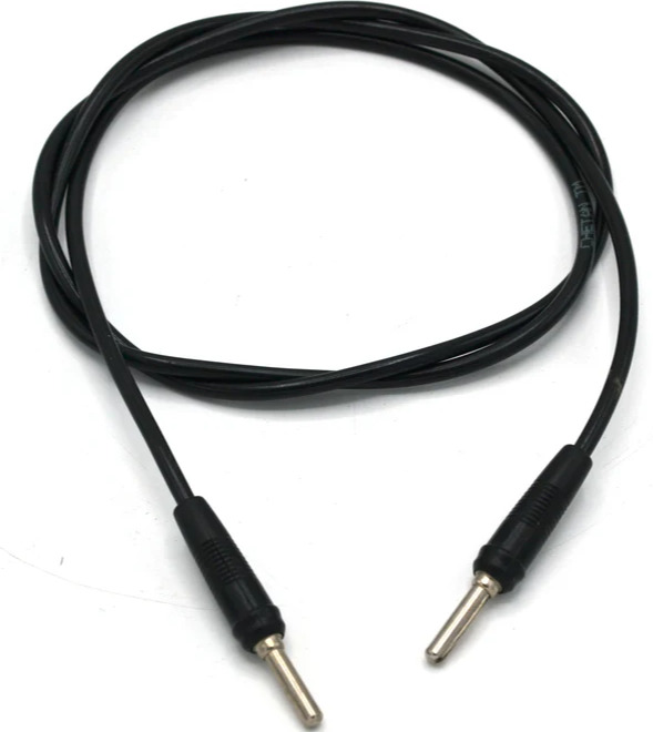 Musta laboratoriojohto, jossa molemmissa päissä 4 mm banaanipistoke.