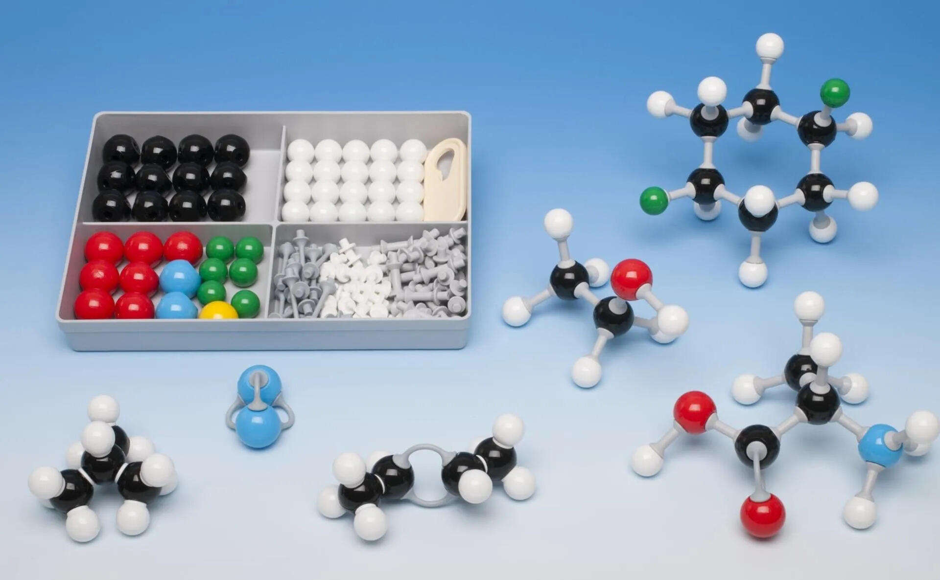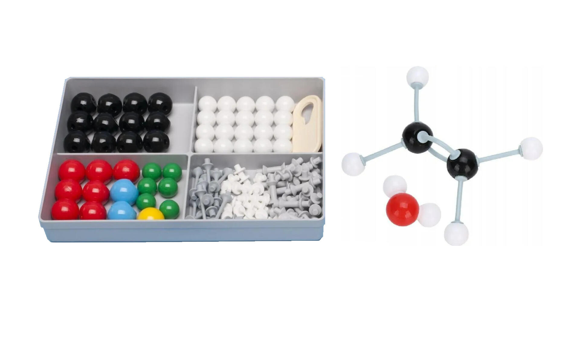 Orgaaninen ja epäorgaaninen kemia. 93 atomia ja 86 sidosta. Suuretkin molekyylit pysyvät hyvin yhdessä. Soveltuu opettajan demonstraatioihin ja ryhmässä tehtäviin oppilasharjoituksiin.