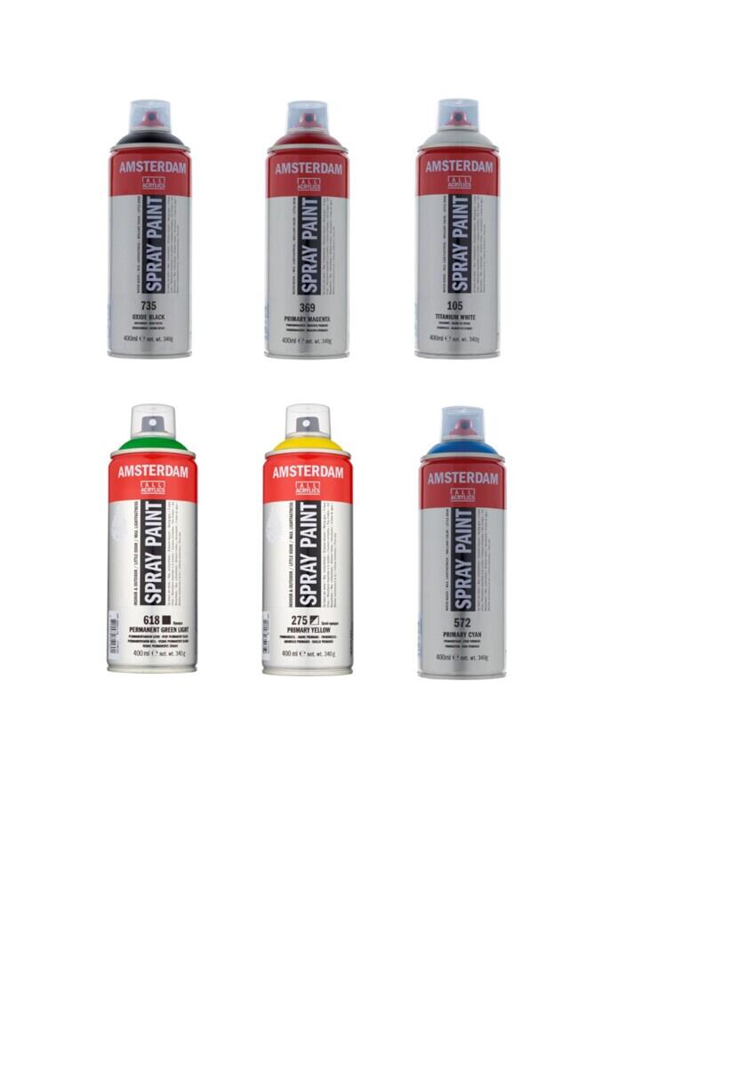 Amsterdam spraymaali on puolipeittävä väri, jolla on erinomainen valonkesto. Vesipohjainen, kuivuu nopeasti. Yleismallinen suutin, jolla maali levittyy 2 cm.