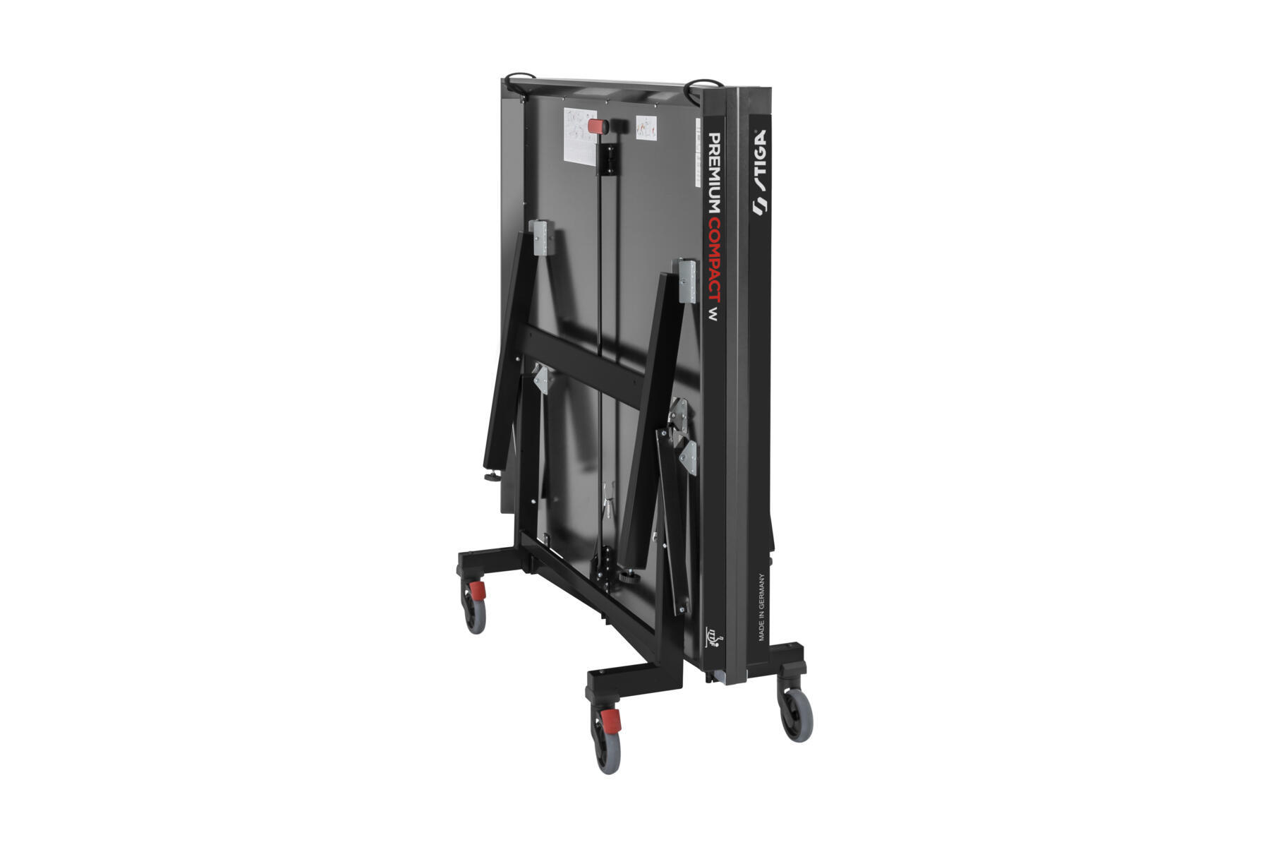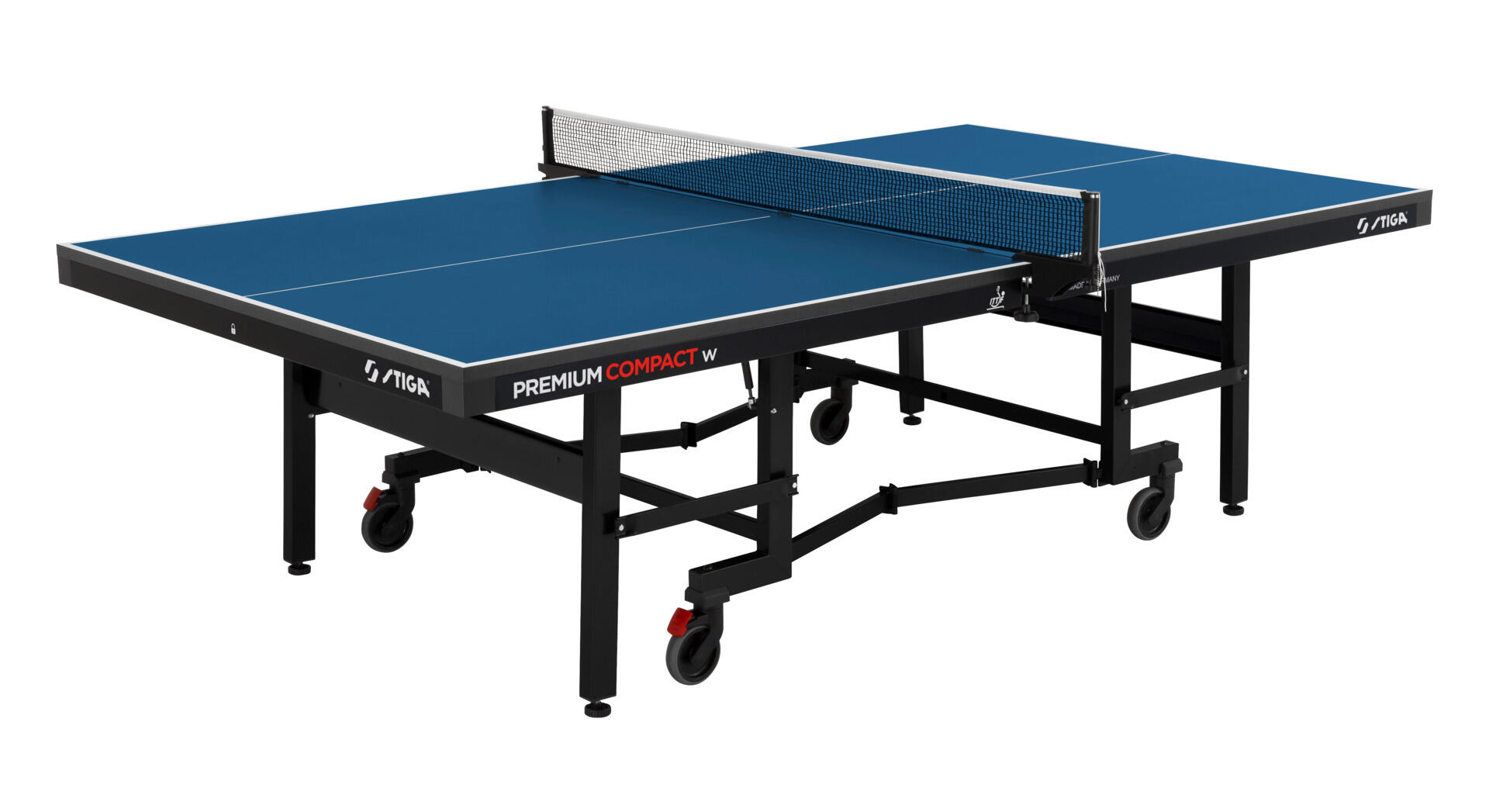Tukeva ja pitkäikäinen STIGA-pöytä. 19 mm puukuitulevyä. Reuna: 50 mm polyesterilakattua ja galvanoitua peltiä. Alusta: 40 x 25 mm, polyesterilakatut jalat pyörillä ja 32 x 32 mm tukijalat. Mitat kokoon taitettuna: 151 x 63 x 153 cm. Paino 87 kg. HUOM! Ei sisällä verkkotelinettä tai verkkoa.