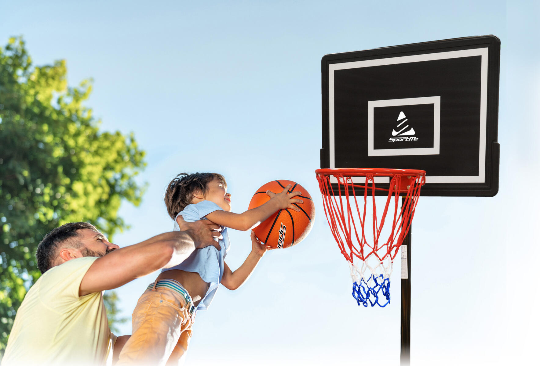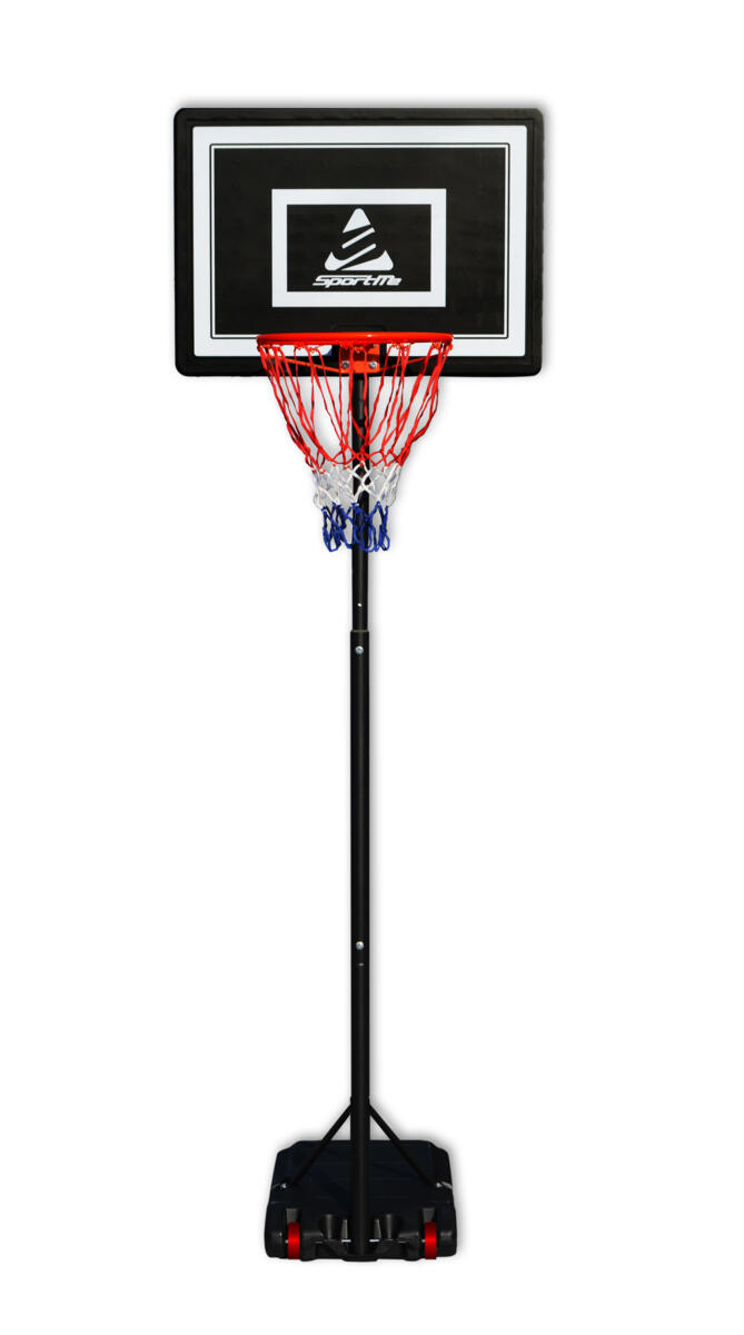 Helposti liikuteltava koripalloteline, säädettävä korkeus 240-305 cm. Tolppa metallia, jalusta PP-muovia ja taustalevy plexilaisa (polykarbonaattia). Paino ilman täyttöä 31 kg. Taustalevy 102 x 61,5 x 5,5 cm, tolpan halkaisija 63 mm.