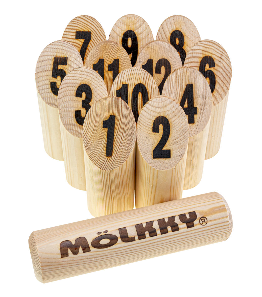 Suosittu "mökkipeli" kahdelle tai useammalle pelaajalle. Pölkkyjä yritetään kaataa heittopalikalla, ja jokaisesta kaatuneesta pölkystä saa sen osoittaman määrän pisteitä. Heittopalikan mitat 5,5 x 15 cm.