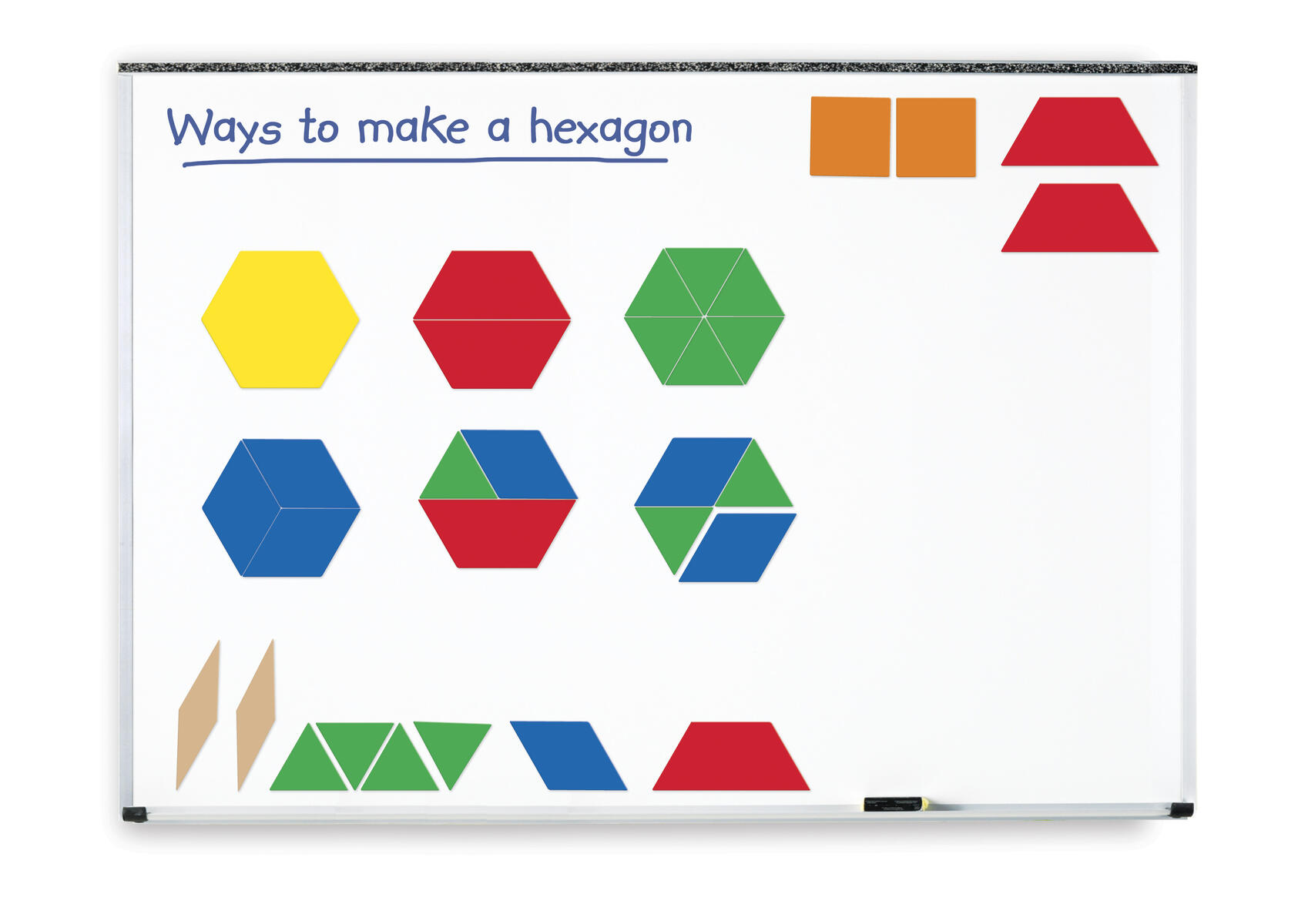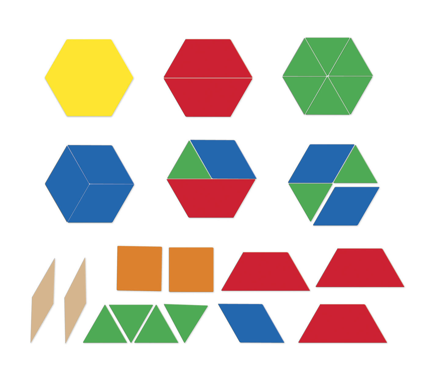 47 kpl/pkt. Jokaisella muodolla on oma värinsä. Harjoittele symmetriaa, kuvioita, geometriaa jne. Kuusikulmion halkaisija 15 cm.