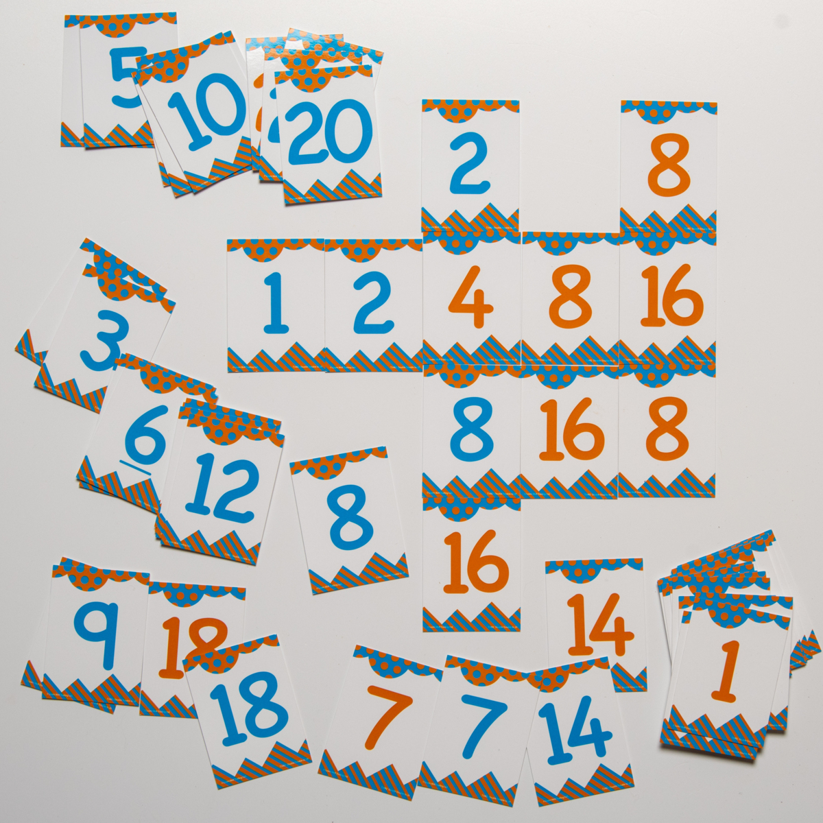 Tämä yksinkertainen peli kasvattaa lasten luottamusta puhumiseen. Jokainen pelaaja asettaa vuorollaan niin monta korttia kuin pystyy luodakseen 'kaksoisketjuja' eli kortteja, jotka ovat kaksinkertaiset tai puolet edellisestä kortista. Peliä voi pelata vain pistekorteilla tai vain numerokorteilla, tai voitte pelata sekä piste- että numerokorteilla. 2-4 pelaajalle. Sisältö: 63 pelikorttia sekä 6 ohjekorttia. Pelikorttien mitat: 54 x 74 mm.
