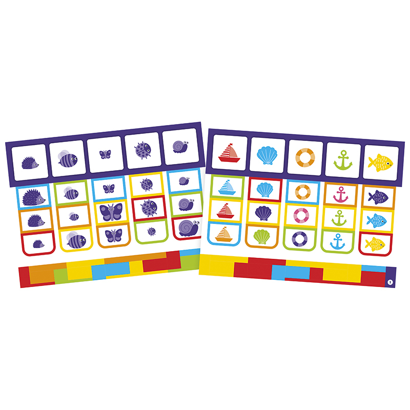 Tunnista eläin tai esine värin, muodon ja koon perusteella. Värikoodaus on itseään korjaava peli, jonka kanssa lapsi voi työskennellä omaan tahtiin. Sisältö: 12 pahvista toimintakorttia (20 x 26 cm) ja 1 opettajan opas. HUOM! Ei sisällä pelikehystä, tilattava erikseen tuotenumerolla 144741/145077.