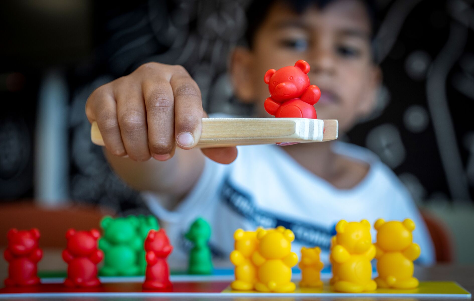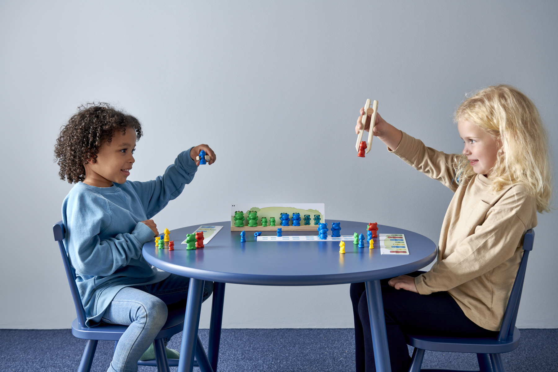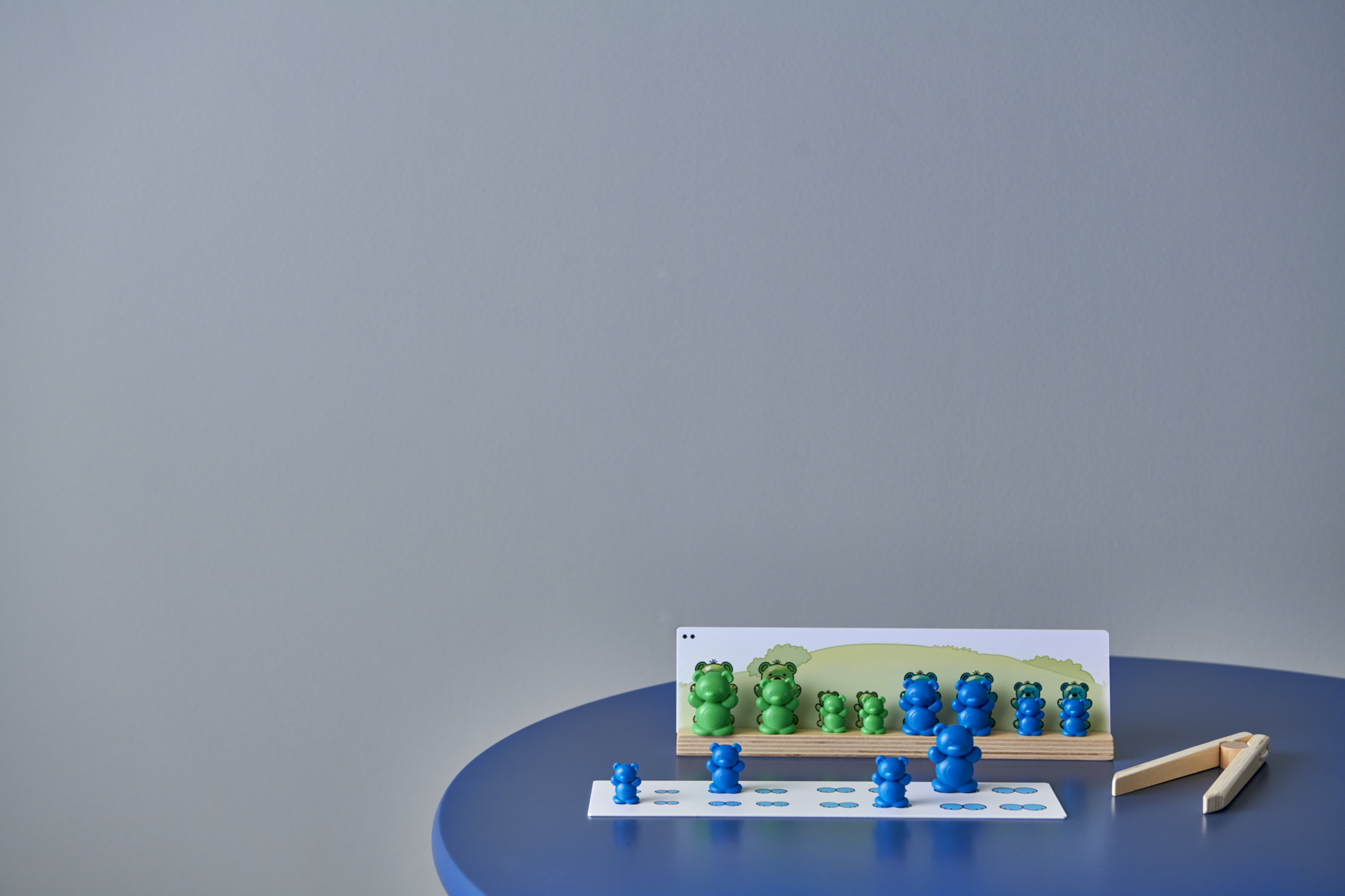 Aseta tehtäväkortti puutelineeseen ja lajittele karhut sen mukaan, mitä tehtäväkortti näyttää. Käytä puisia pinsettejä kehittääksesi hienomotoriikkaa. Tehtäväkorteissa on erilaisia lajitteluhaasteita. Sisältö: 8 muovista työarkkia, 64 muovikarhua, 2 puista pinsettiä, 2 puista telinettä ja puinen säilytyslaatikko. Puulaatikon mitat: 33,5 x 22,5 x 7 cm. Yli 3-vuotiaille.
