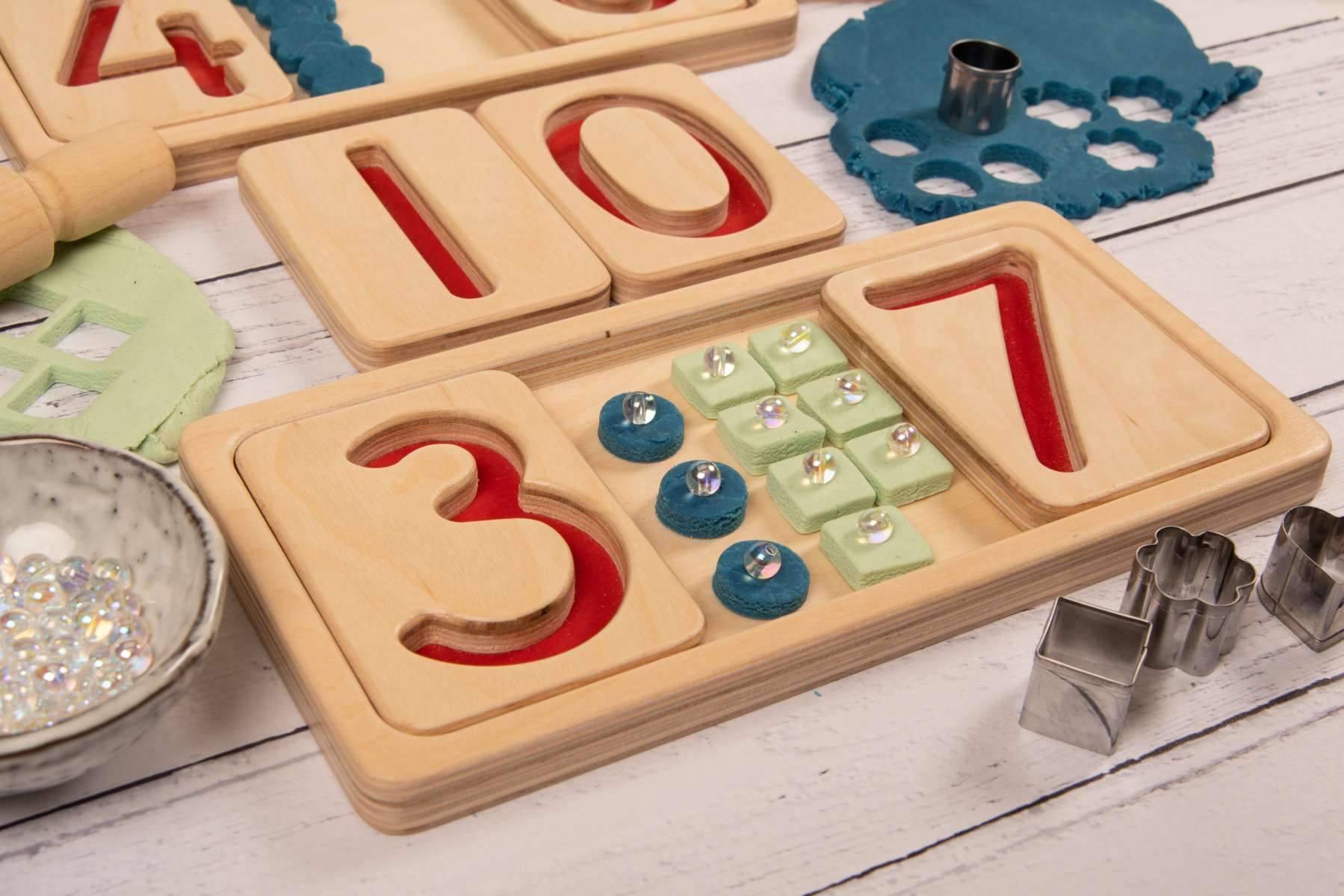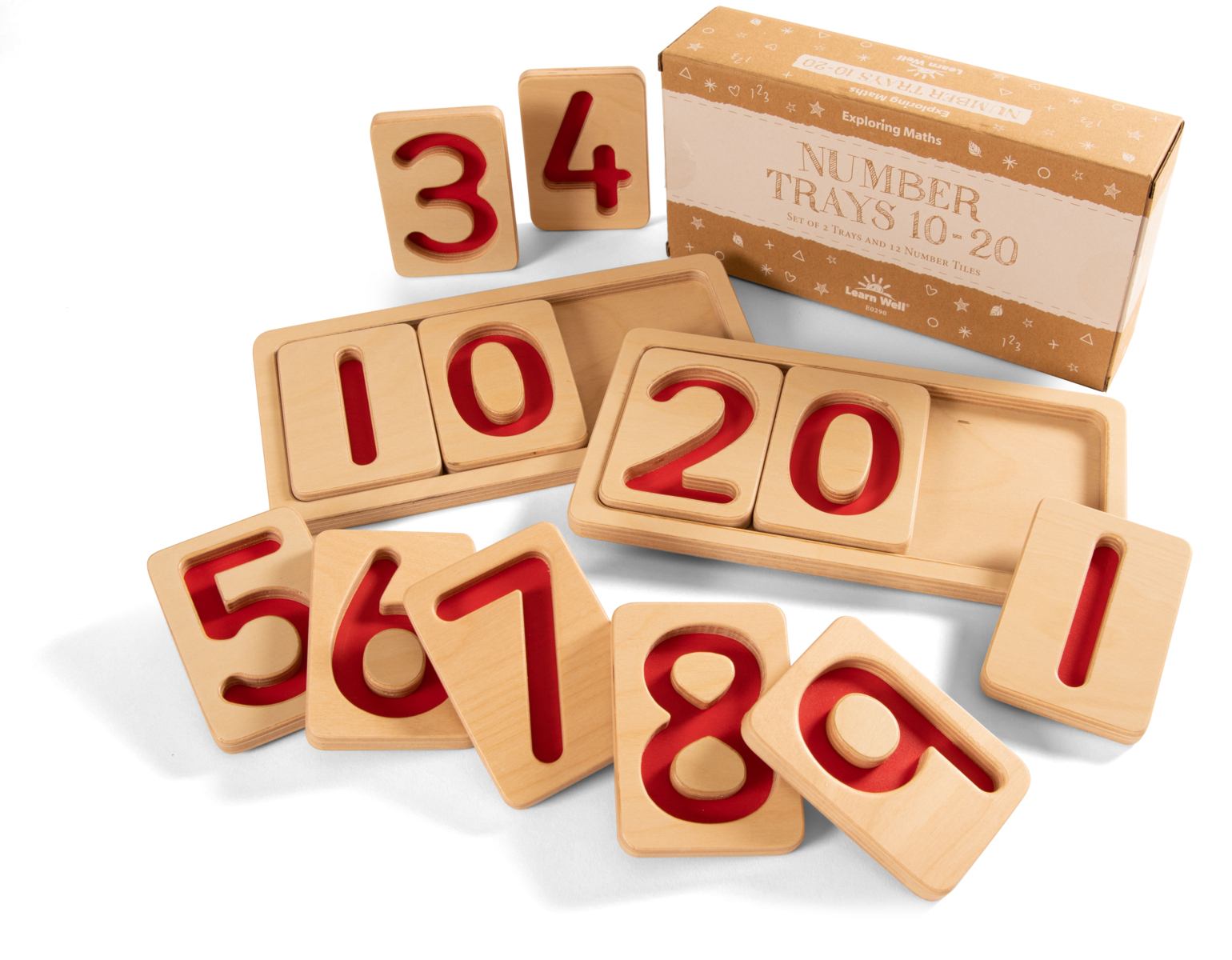 Käsintehdyt puiset tarjottimet, jotka syventävät matematiikan ymmärrystä. Ihanteellinen laskennan, lukusidosten ja matemaattisen kielen tutkimiseen. Paketti sisältää 2 alustaa ja 12 numeroa.