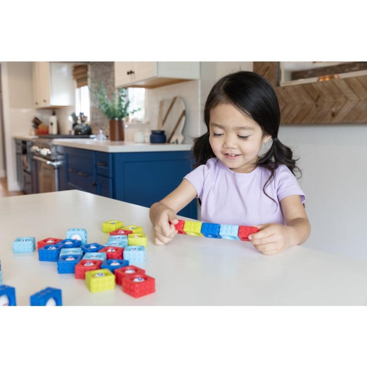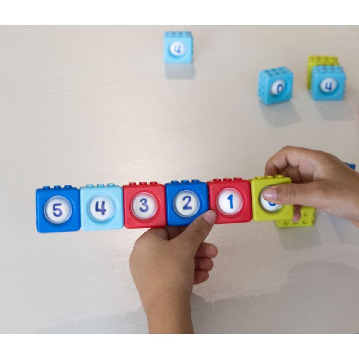42 kpl. Taktiilisia ja sensorisia rakennuspalikoita, joissa on numeroita ja merkkejä, joita voit poksauttaa. Yhdistä palikoita eri tavoin ja harjoittele erilaisia asioita. Yhdistä numerot 0-9 lukusuoraksi (voit tehdä 3 samanaikaisesti), muodosta erilaisia numeroita +/-/=/?-merkeillä tai pelaa muistipeliä. Pakkaus sisältää 30 numeropalikkaa, 3 + palikkaa, 3 - palikkaa, 3 = palikkaa ja 3 ? palikkaa. Mitat: 3 x 3 cm. Materiaali: HIPS (polystyreeni). Yli 3-vuotiaille.