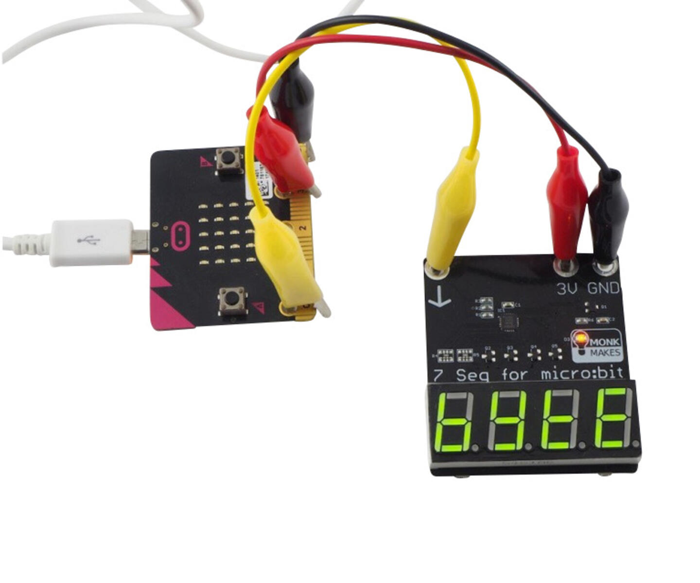 Neljänumeroinen 7-segmenttinäyttö micro:bittiin. Käytetään numeroiden, kirjainten ja merkkien näyttämiseen.