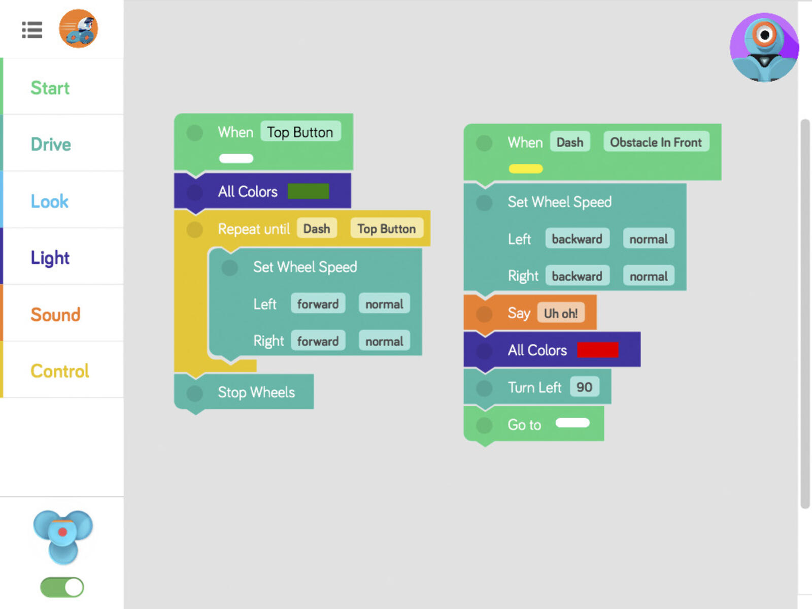 Dash voi liikkua ympäriinsä ja tehdä paljon hauskoja juttuja. Siinä on sisäänrakennettu kaiutin, ohjelmoitavat ledit, jotka vaihtavat väriä, anturit, joiden avulla robotti väistää esteitä jne. Ohjelmointi tapahtuu tabletilla ja kaikki yhteydet Bluetoothin kautta.
