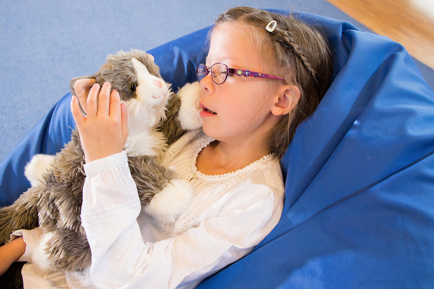 Tämä pehmeä kissa toimii käsinukkena, painoeläimenä tai lämmittävänä ystävänä. Lämmitettynä lämpötyyny tekee kissasta lähes elävän tuntuisen. Tyynyn sisältö on PE-muovigranulaattia. Mukana tulee myös sininen pussi, jonka voi täyttää haluamallaan materiaalilla. Pituus 47 cm. Materiaali: synteettiset kuidut, akryyli ja polyesteri. Käsinpesu 30 °C. Yli 1-vuotiaille.