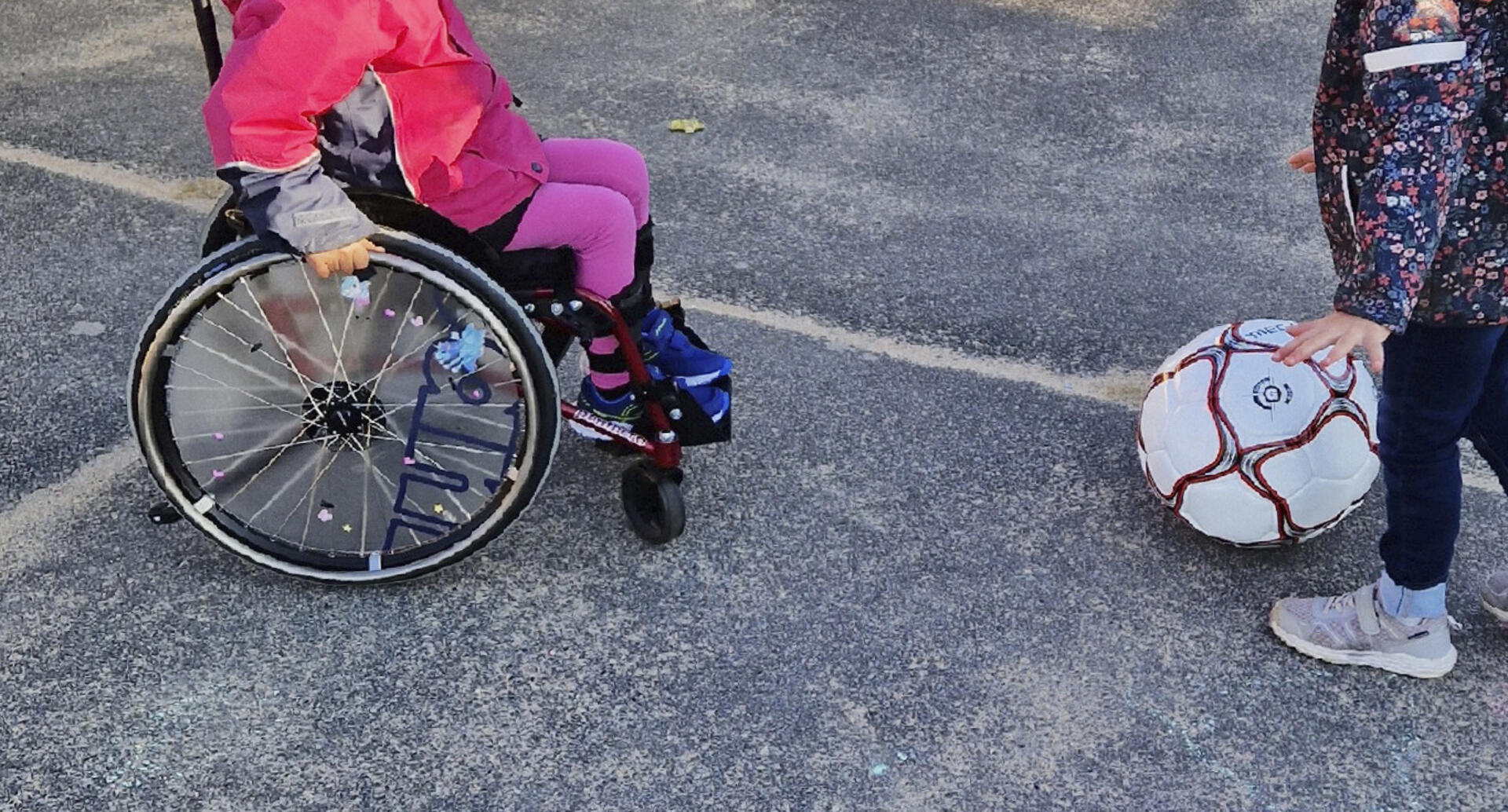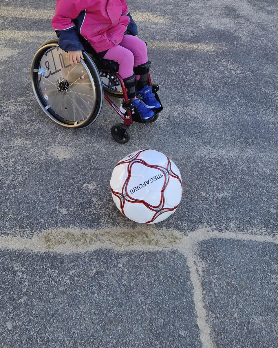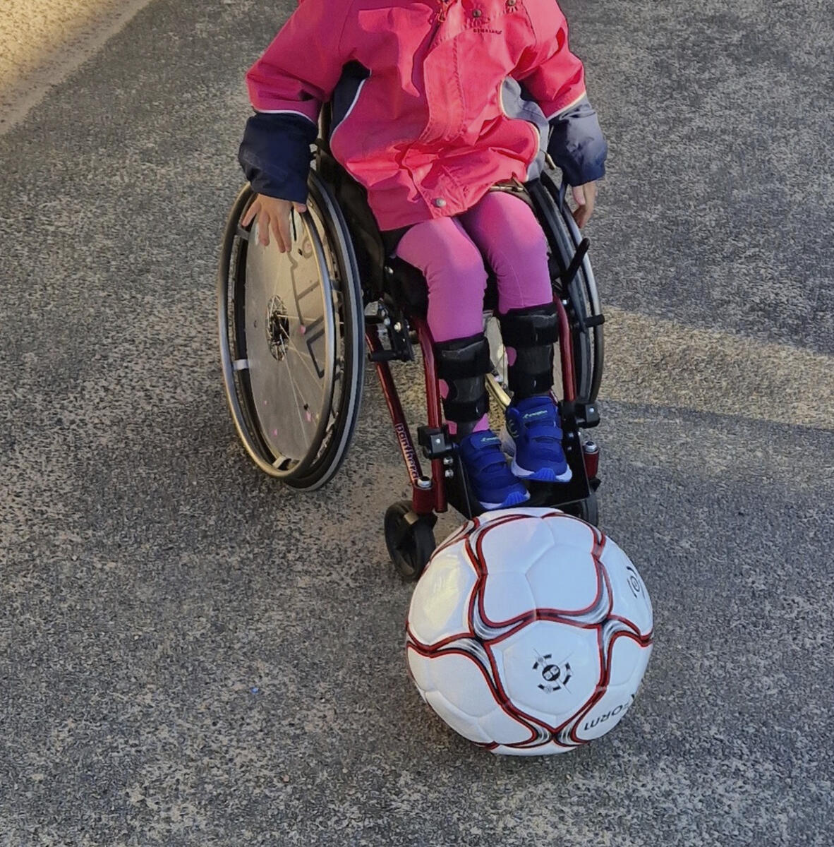 Jalkapallo, joka on suunniteltu erityisesti pyörätuolin käyttäjille. Halkaisija 33 cm.