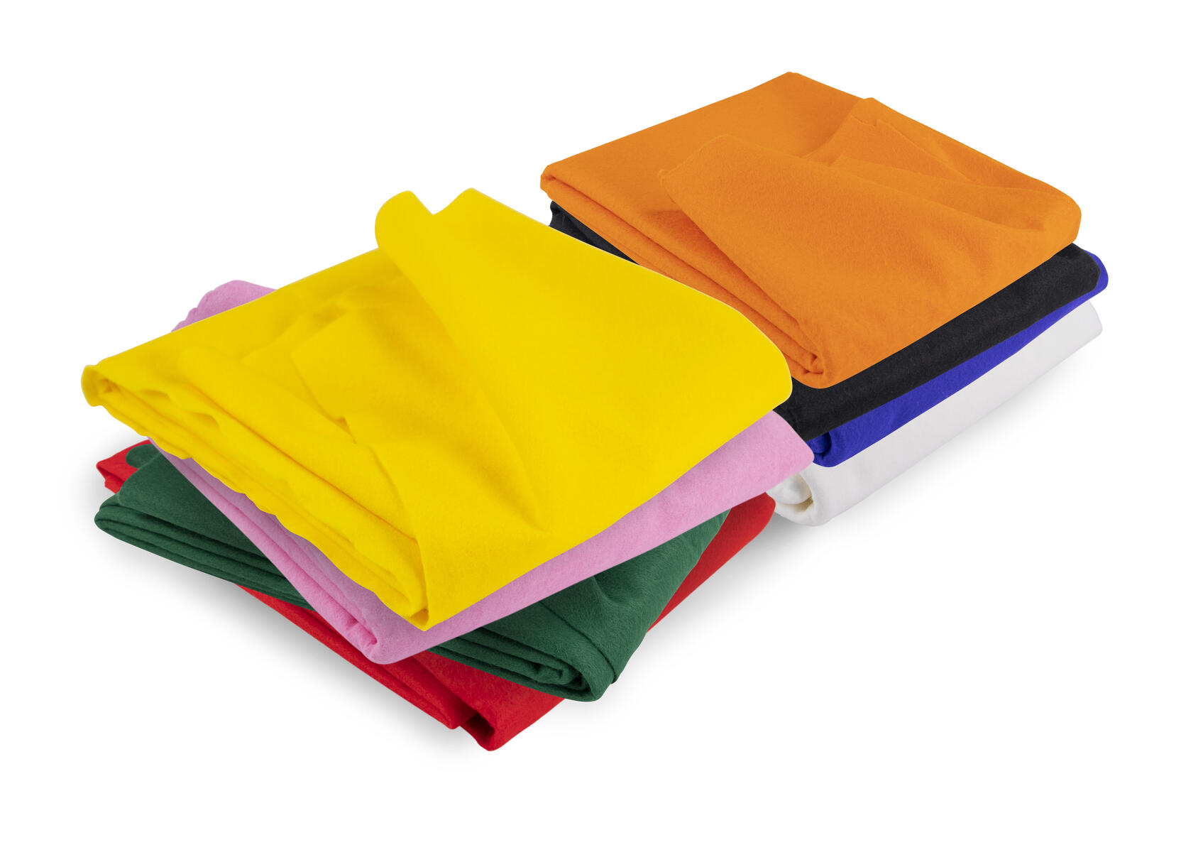 Palan pituus on 5 m, leveys 90 cm. Lajitelma sisältää värit: tummankeltainen, oranssi, punainen, roosa, violetti, sininen, vaaleanvihreä, tummanvihreä, musta ja valkoinen. 100% polyesteria. 170 g/m².