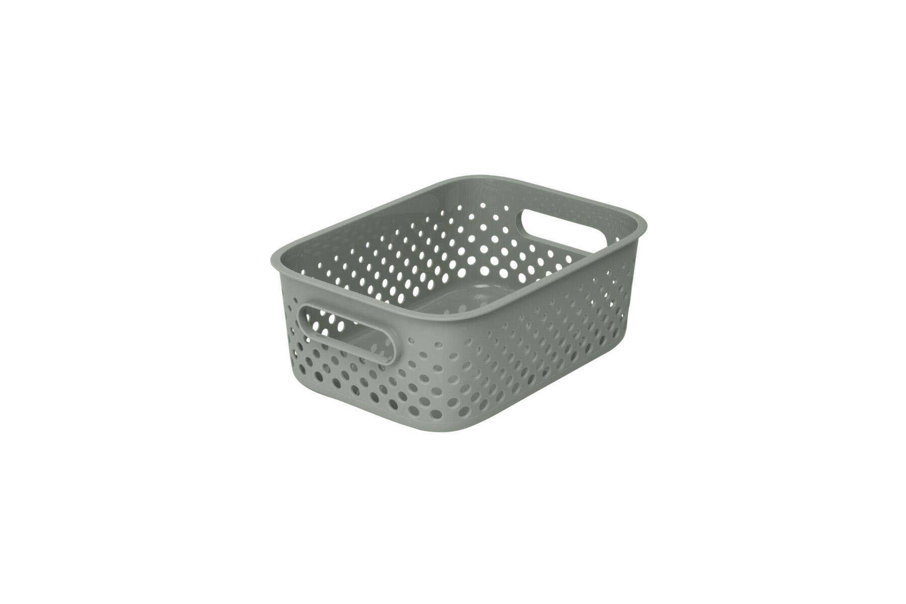 Pinottava kori. Ulkomitat: 25 x 15 x 7 cm (L x S x K). Polypropeenimuovia. Elintarvikekelpoista muovia. Kestää konepesun ja mikroaaltouunin.