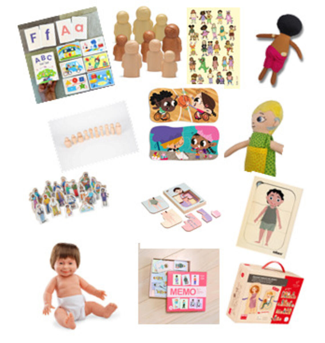 Suuri pakkaus leluja, joilla voi leikkiä ja osallistavalla tavalla keskustella siitä, mikä tekee meistä erilaisia ja tasavertaisia ja samalla lisätä ymmärrystä toisistamme. Yli 3-vuotiaille,