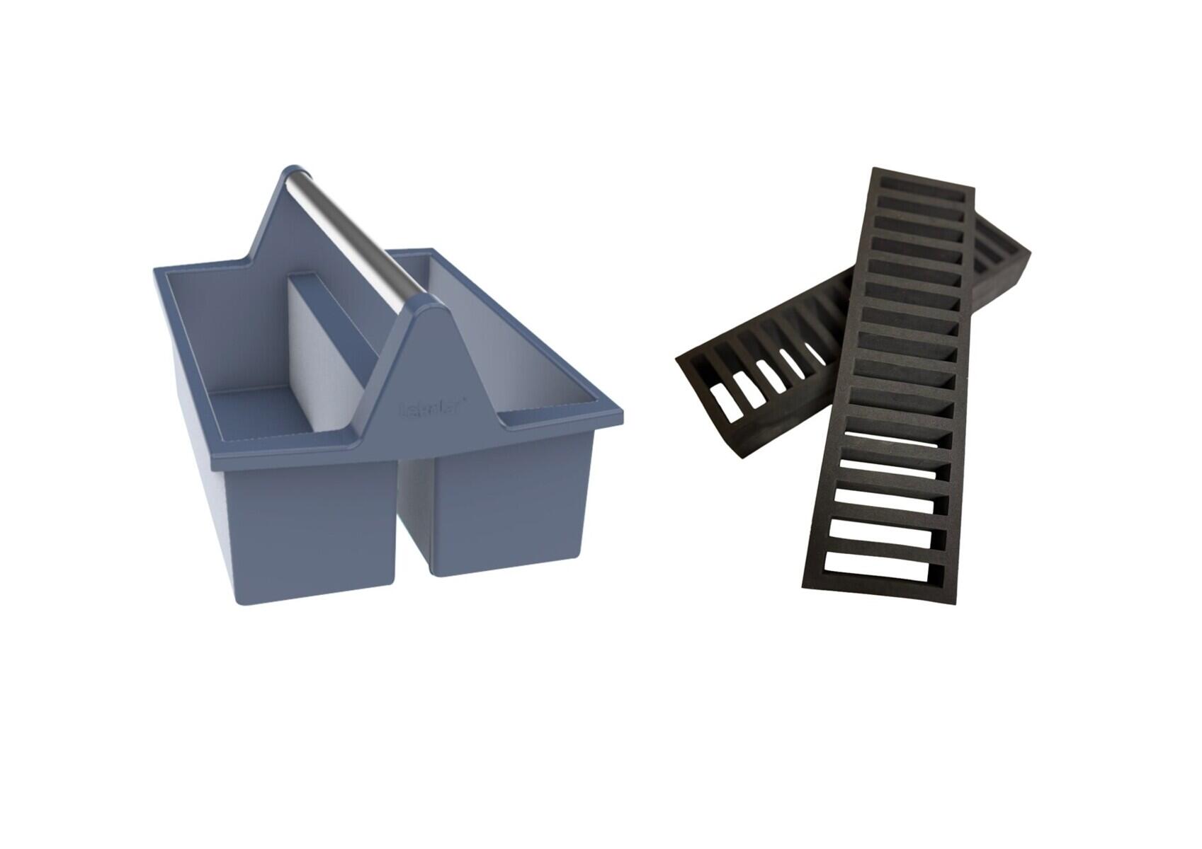 Vankka puhelinlaatikko, jossa on kahva. Sisältää sisäosan, jossa on paikat 30 puhelimelle. Kätevä säilytysratkaisu, joka on helppo siirtää tilasta toiseen. PP-muovinen laatikko alumiinikahvoilla, jakaja EVA-muovia. Mitat: 42 × 26 × 21 cm.