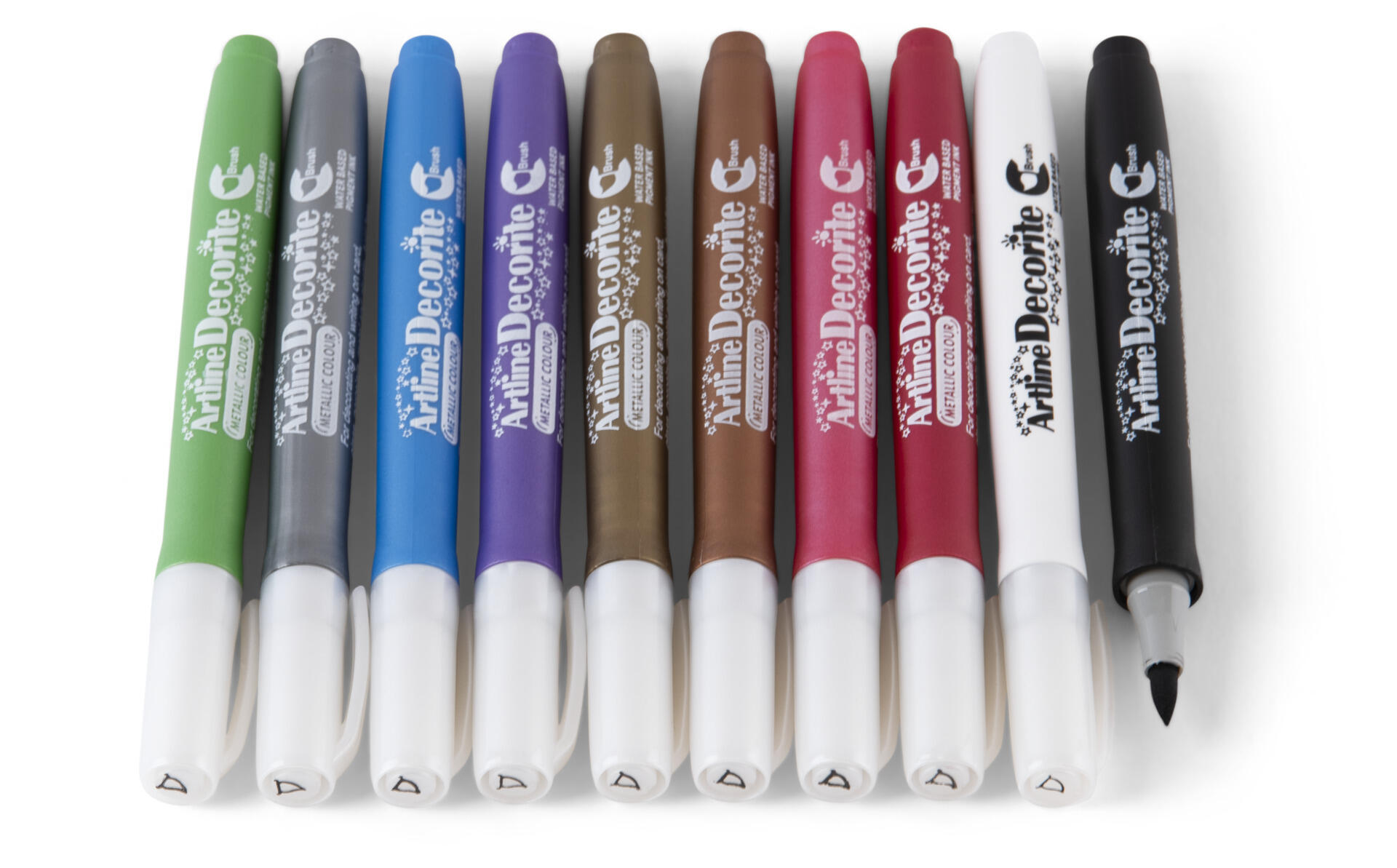 Pyöreä sivellinkärki, Ø 1 mm. Vesipohjainen huopakynä, joka sopii useimmille pinnoille. Täydellinen tummalle paperille, puulle, keramiikalle, posliinille, metallille ja muoville. Vesipohjaisen pigmenttimusteen ansiosta Artline Decorite -huopakynä on heti käyttövalmis ilman pumppausta tai ravistamista. Lähtee vedellä helposti ei-huokoisilta pinnoilta.