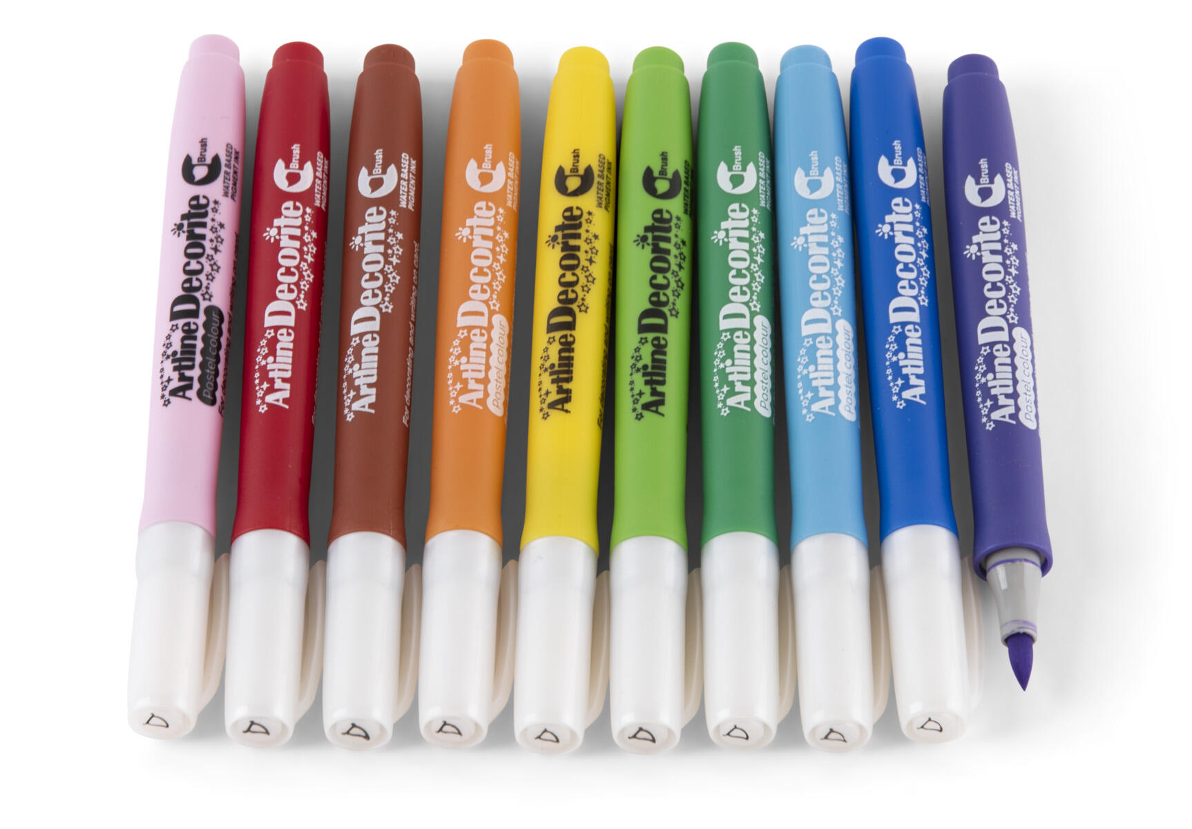 Pyöreä sivellinkärki, Ø 1 mm. Vesipohjainen huopakynä, joka sopii useimmille pinnoille. Täydellinen tummalle paperille, puulle, keramiikalle, posliinille, metallille ja muoville. Vesipohjaisen pigmenttimusteen ansiosta Artline Decorite -huopakynä on heti käyttövalmis ilman pumppausta tai ravistamista. Lähtee vedellä helposti ei-huokoisilta pinnoilta.
