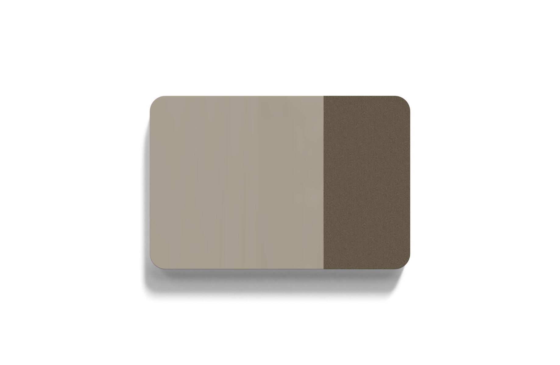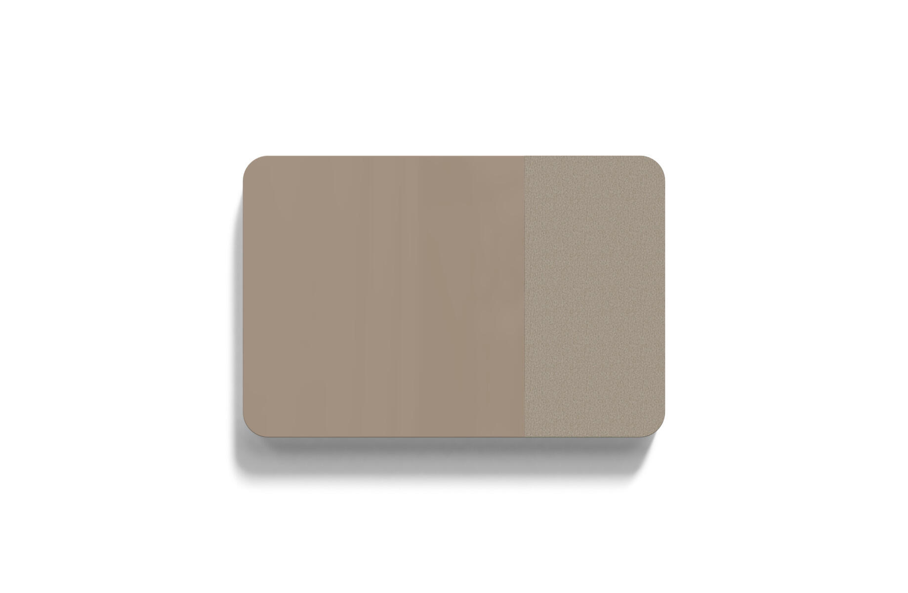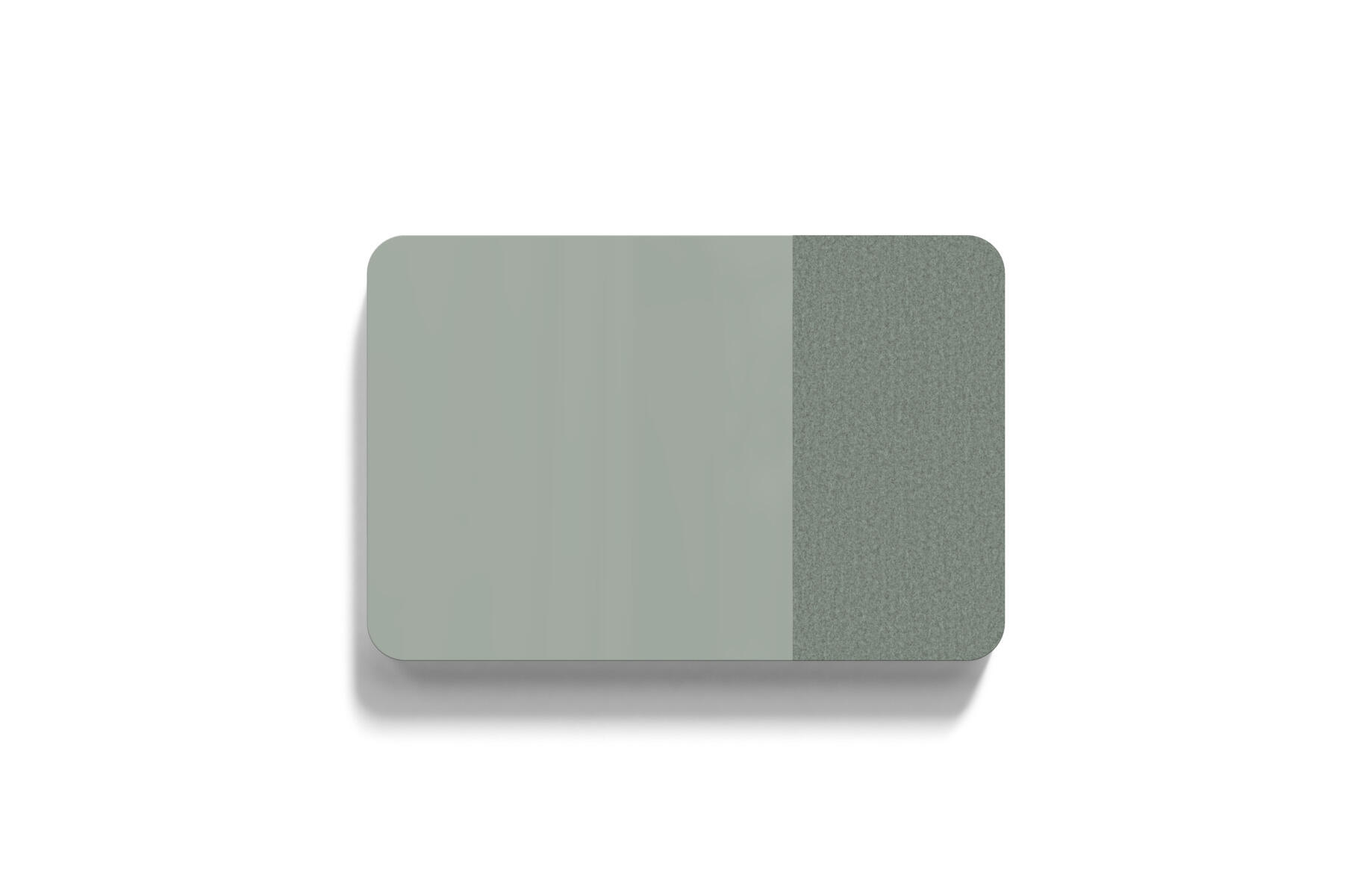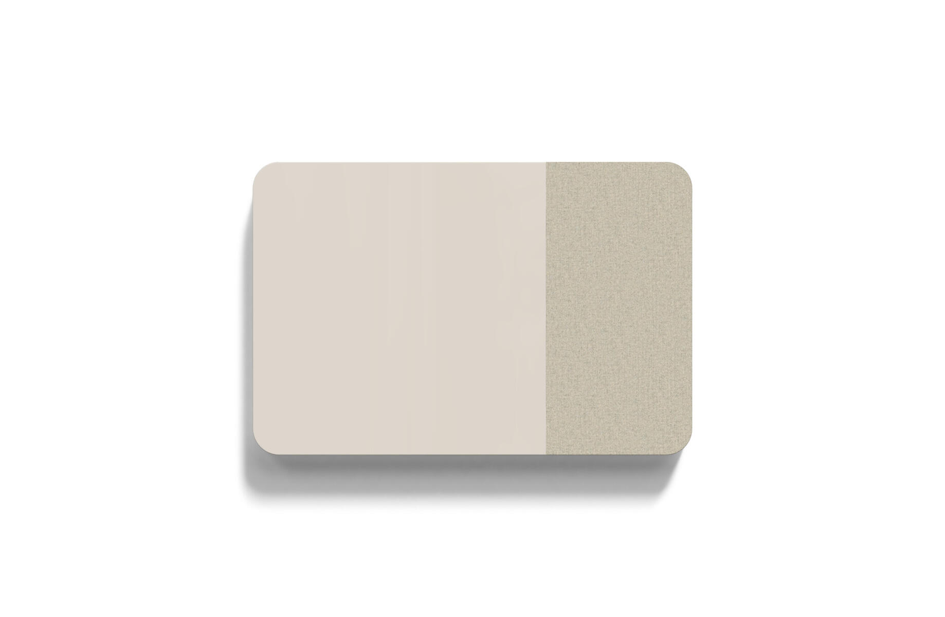 Lasitaulu, jossa pyöristetyt kulmat ja verhoiltu runko. Taulussa on lasinen kirjoituspinta, verhoiltu osa on 50 cm leveä. Piilokiinnikkeet. Kirjoituspinta on magneettinen, optista lasia. 48 mm ääntä eristävä täyte. Lasipinta vaatii tavallista vahvempia, lasipinnalle tarkoitettuja magneetteja.