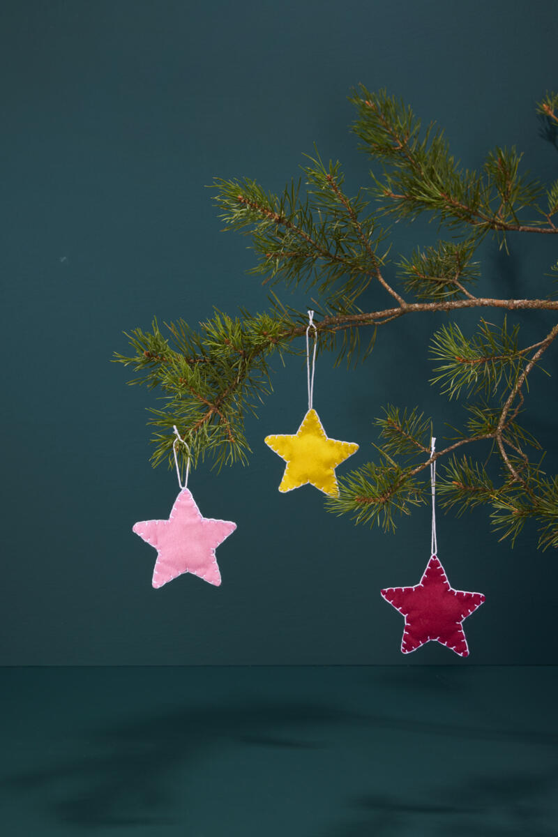 - Ompele varsipistoilla tähtikuvioiset huopakankaat yhteen, mutta jätä pieni auki täytteen lisäämistä varten.