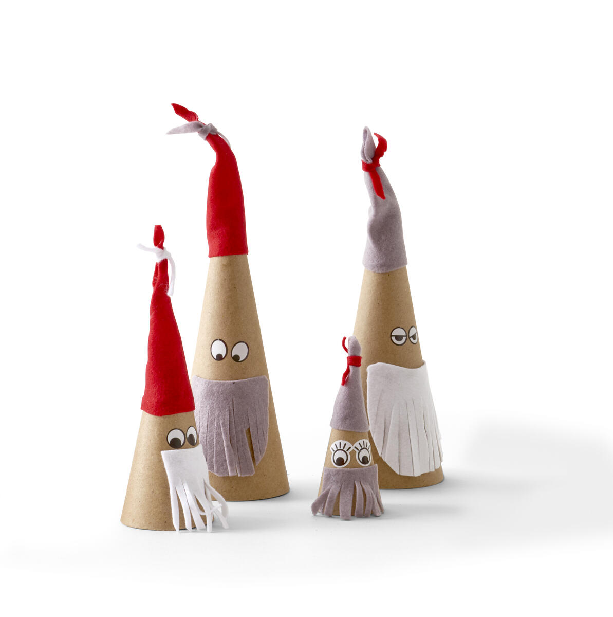1. Leikkaa askarteluhuovasta tonttulakit ja parrat.