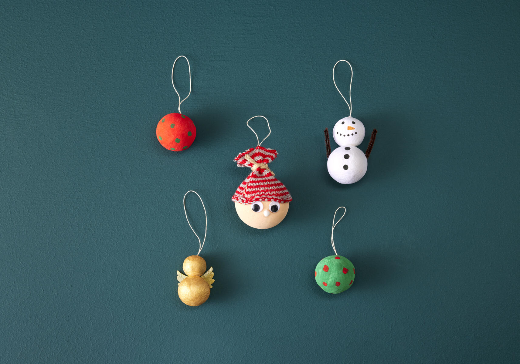 1. Luo persoonallisia joulupalloja käyttämällä erilaisia ​​paperimassapalloja.