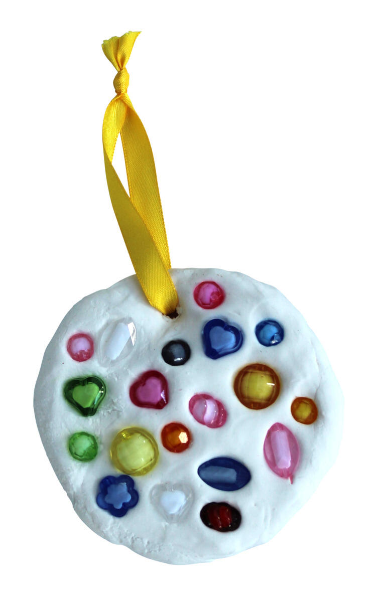 - Paina saveen haluamasi määrä kristallikiviä ja tee reikä yläosaan. Anna kuivua.