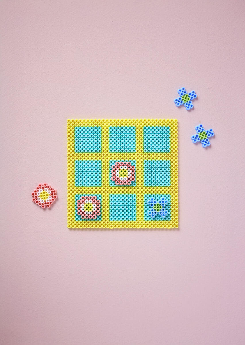 - Aseta leivinpaperi päälle ja silitä silitysraudalla, kunnes kaikki helmet ovat sulaneet yhteen. HUOM! Pyydä aikuisen apua, kun alat silittää. Sekä silitysrauta että helmet kuumenevat erittäin paljon. Laita jokin painava esine päälle ja anna jäähtyä.