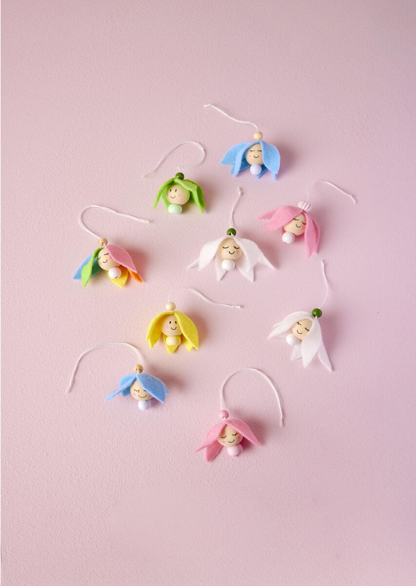 3. Liimaa terälehdet suuren puuhelmen ympärille, mutta jätä pieni aukko kasvojen kohdalle.