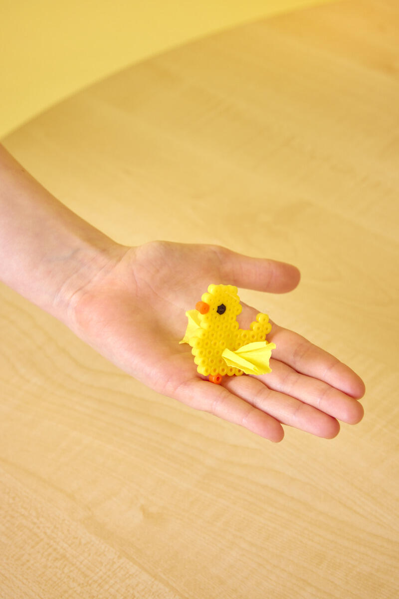 - Aseta leivinpaperi päälle ja silitä silitysraudalla, kunnes kaikki helmet ovat sulaneet yhteen.