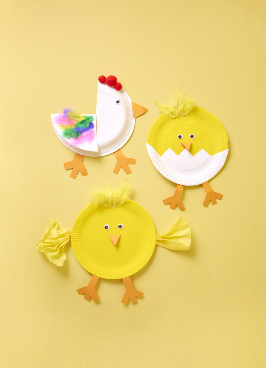 - Leikkaa tukkatöyhtö, heltta, nokka, siivet ja jalat värjätystä kartongista.