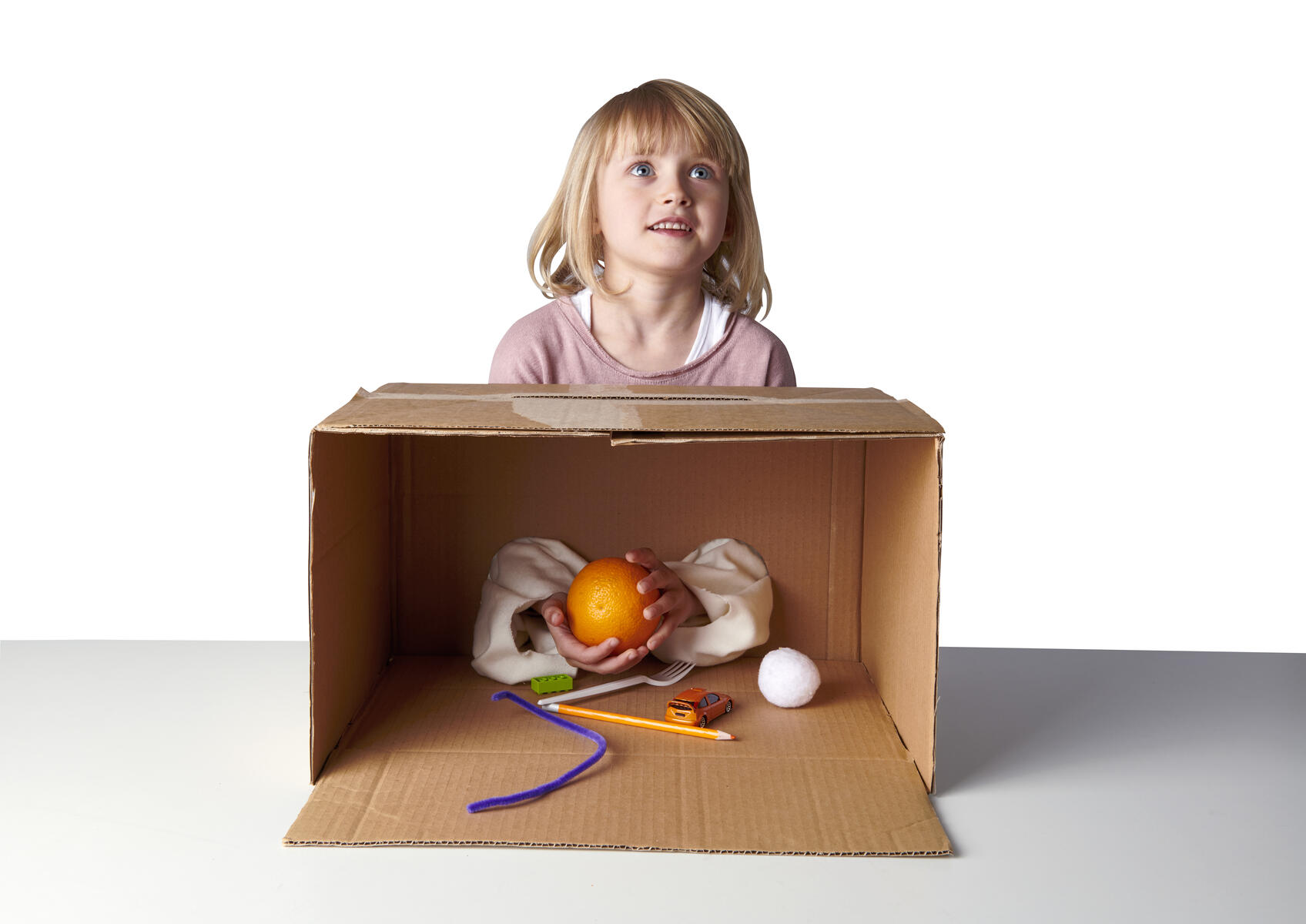 - Käytä laatikossa esineitä, jotka ovat erituntuisia, -painoisia ja -muotoisia.