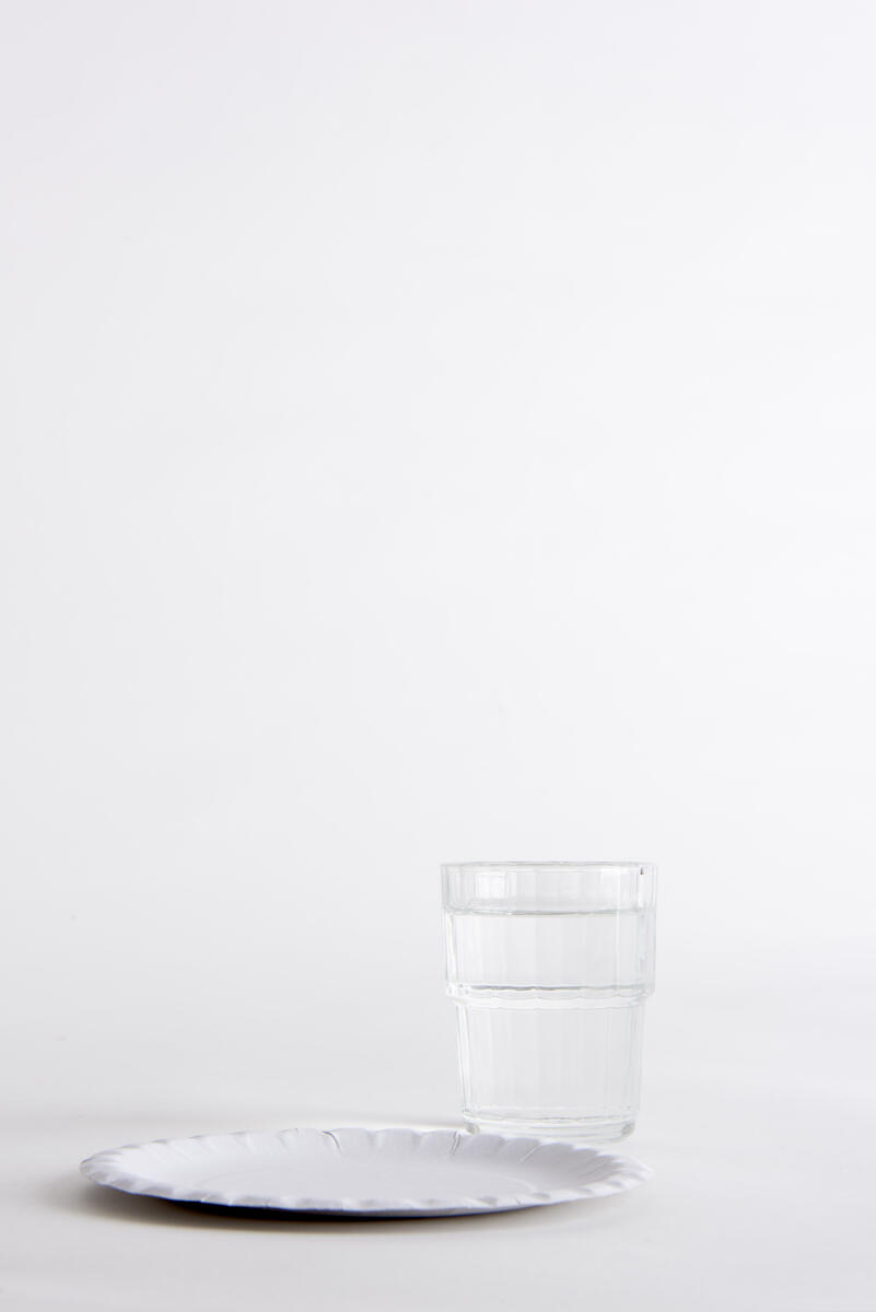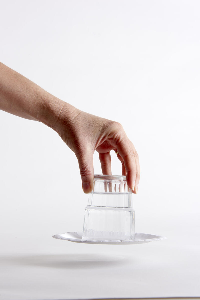 - Laita lasiin vettä ja paperilautanen sen päälle.