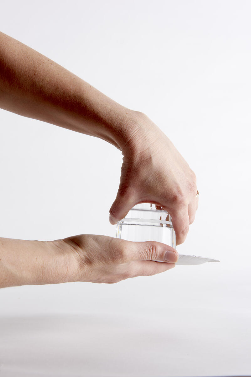 - Laita käsi lautasen päälle ja käännä lasi ylösalas.