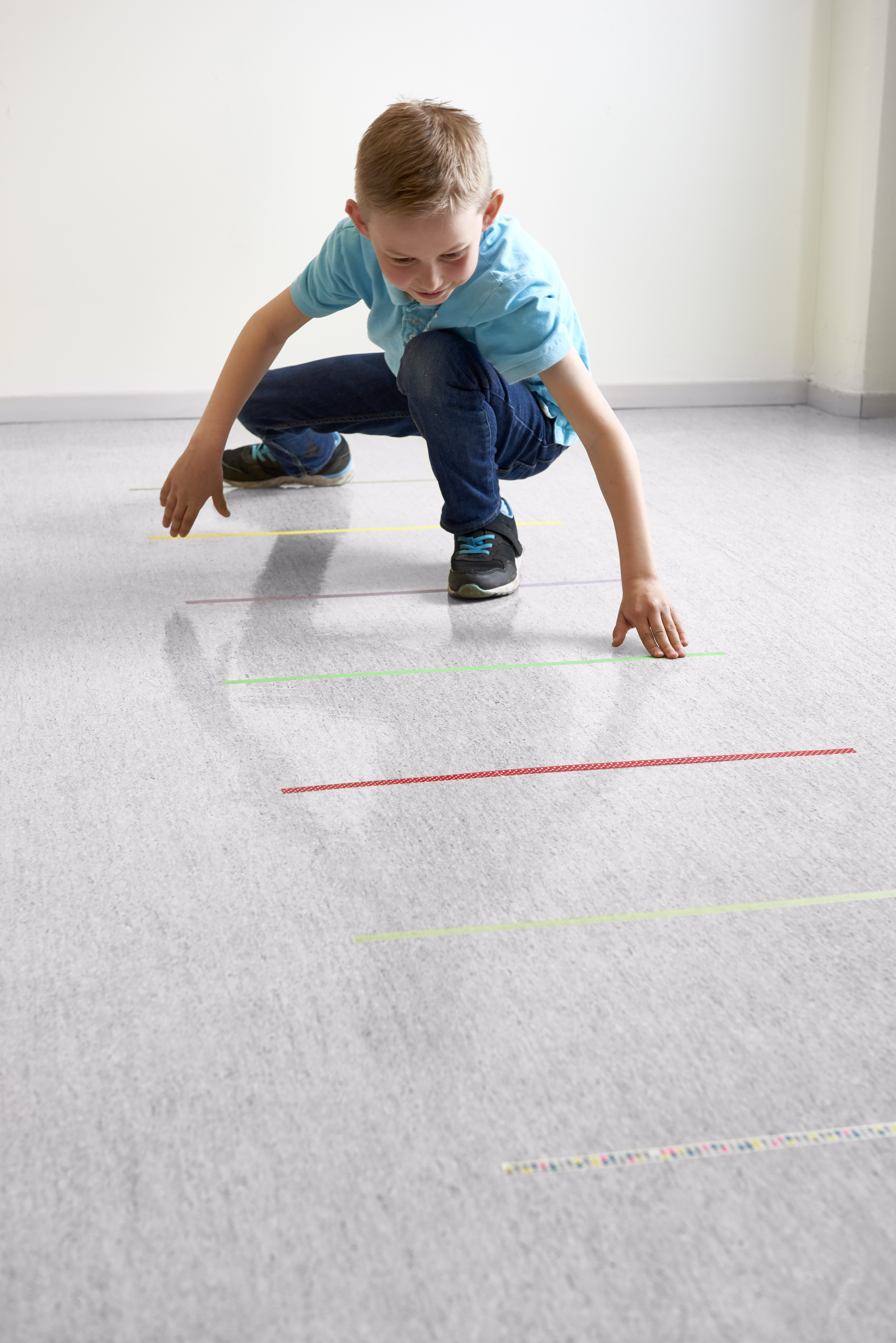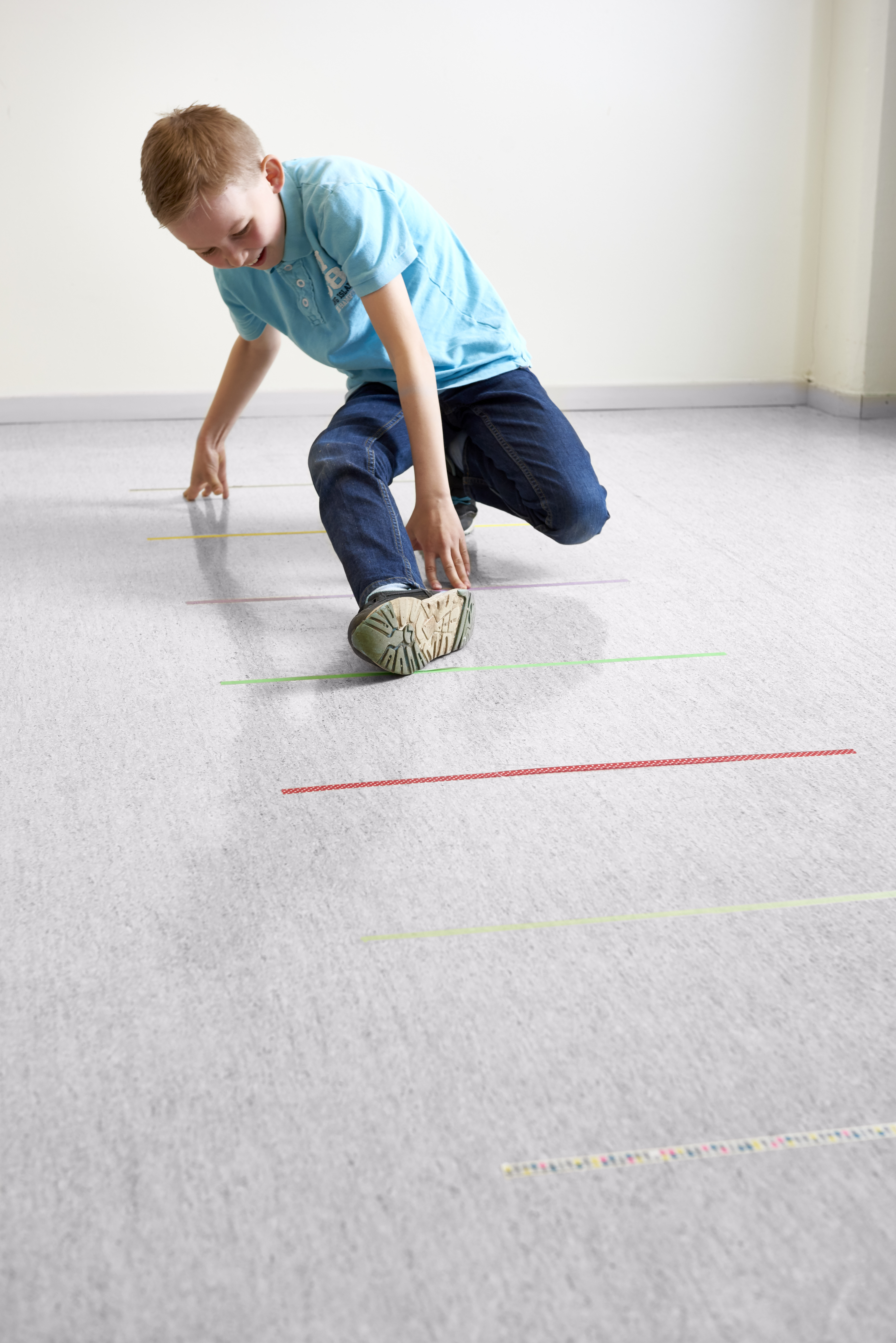 - Tee lattialle washiteipin avulla viivoja noin 20 cm:n etäisyydelle toisistaan.