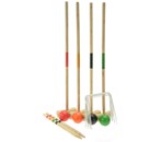 Täydellinen krokettisetti, jossa 4 puumailaa, 4 pa...