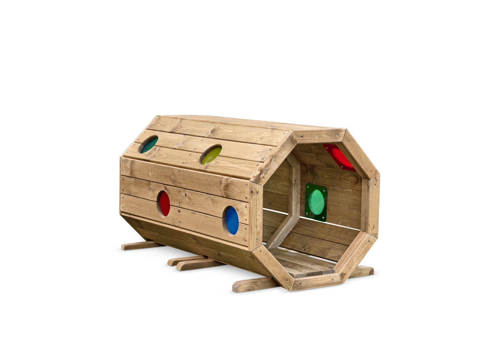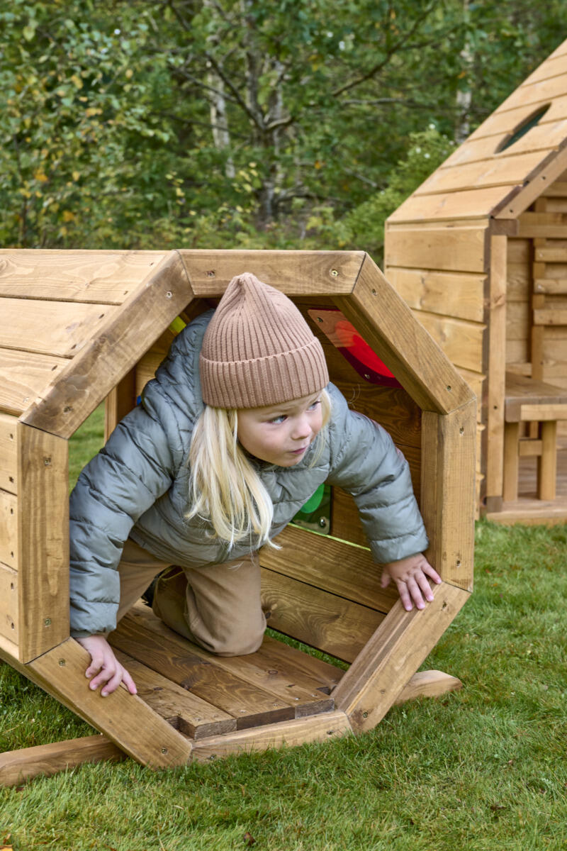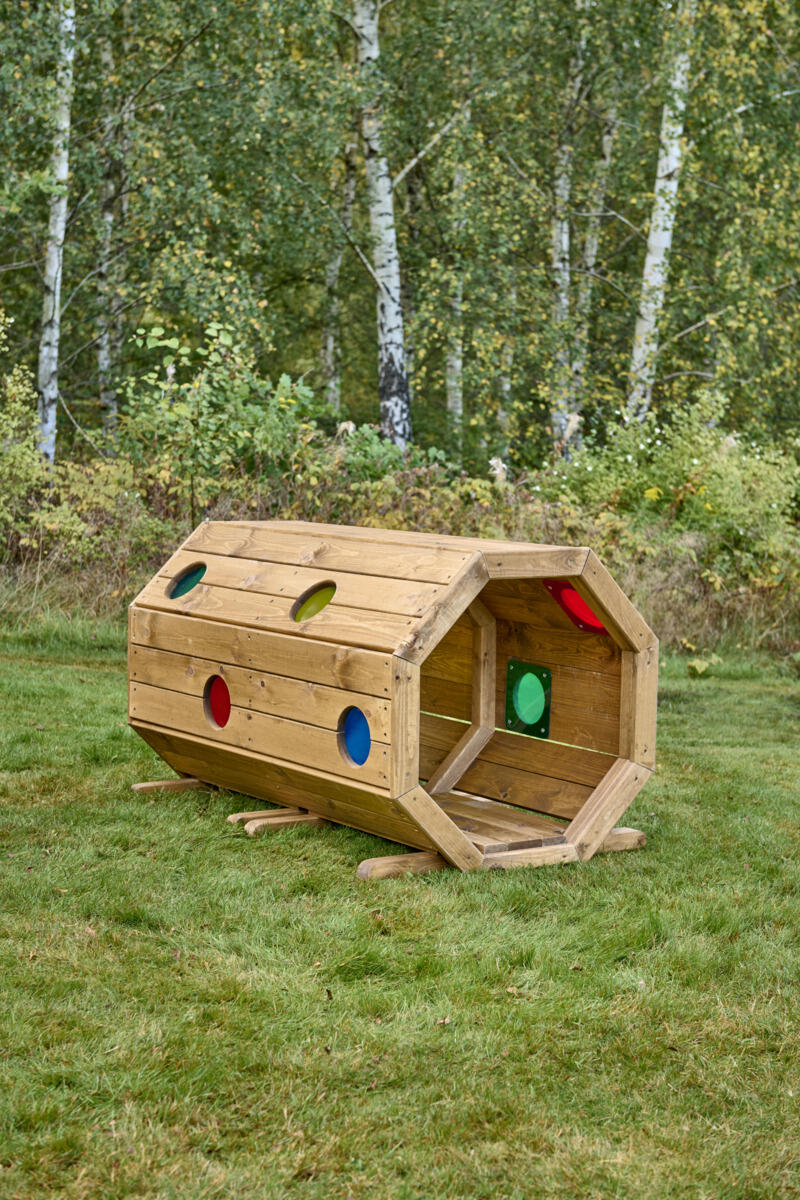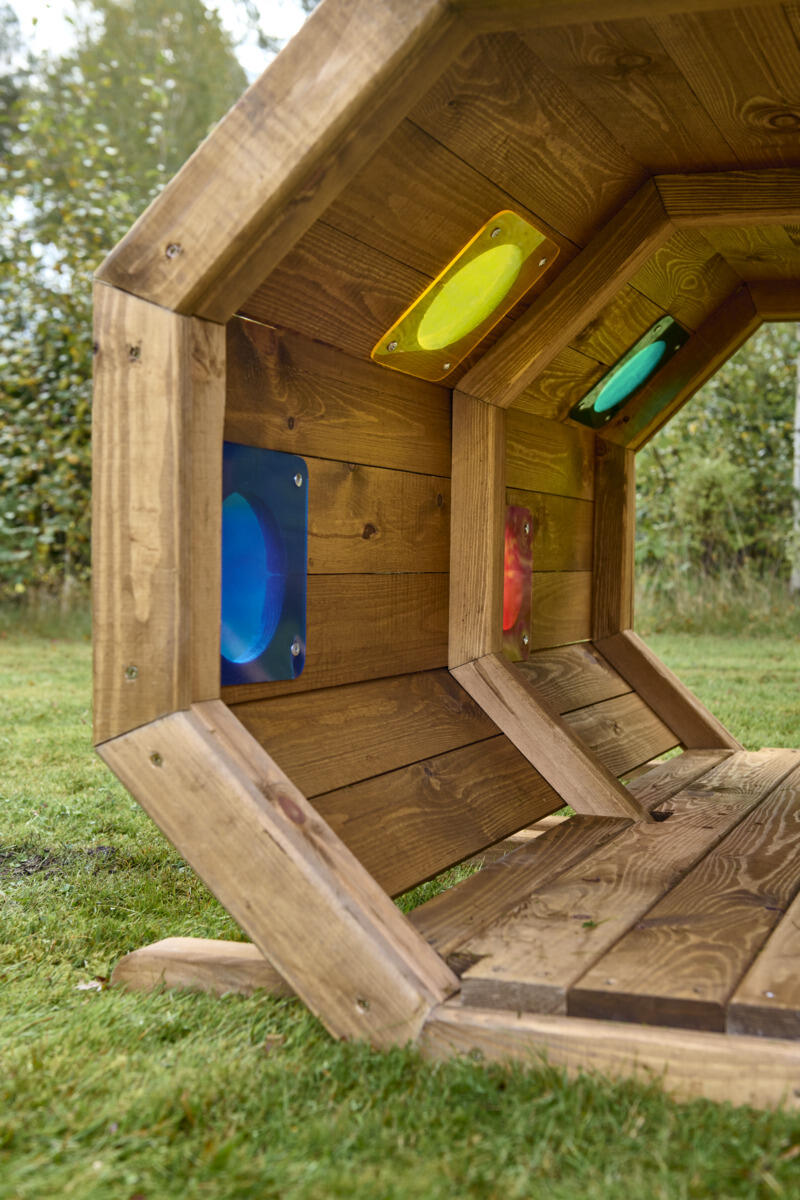 Viihtyisä tunneli ryömimiseen ja aktiiviseen ulkoleikkiin. Sopii erinomaisesti motoristen taitojen harjoitteluun sekä piilo‑ ja kurkistusleikkeihin. Värillisen pleksilasin läpi suodattuva valo luo elämyksellisiä, visuaalisia aistikokemuksia, jotka innostavat tutkimaan ja liikkumaan. Valmistettu kestävästä FSC-sertifioidusta männystä ja pintakäsitelty vesiohenteisella lakalla ulkokäyttöä varten. Parhaan kestävyyden varmistamiseksi suositellaan vuosittaista huoltokäsittelyä. Ankkurointi myydään erikseen: maakiinnitykseen tarvitaan 4 kpl, tuotenumero 161297, tai pintakiinnitykseen tuotenumero 151133. Toimitetaan osina. Asiakas vastaa asennuksesta. Toimitusmaksu 100 €/tilaus.
